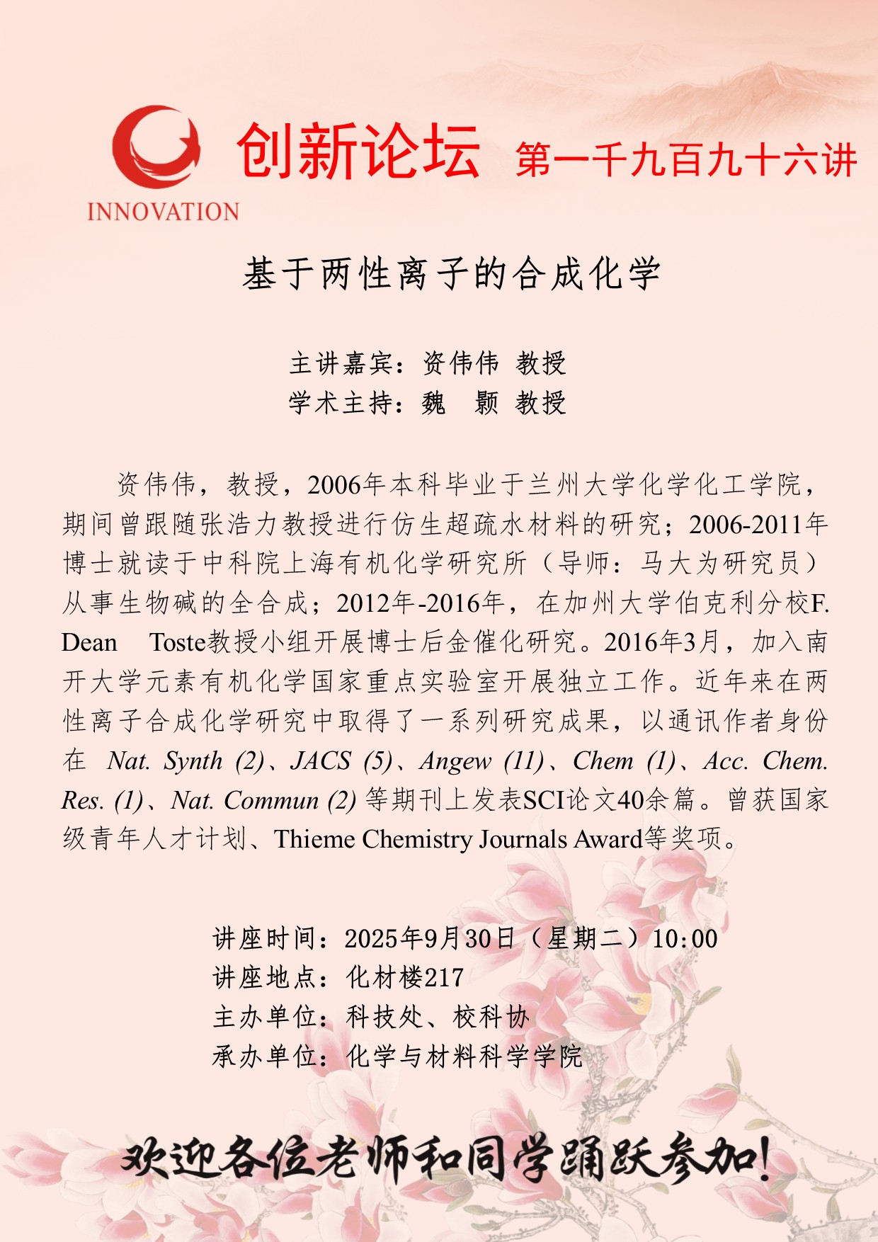 云博app官方在线入口创新论坛第一千九百九十六讲: 基于两性离子的合成化学