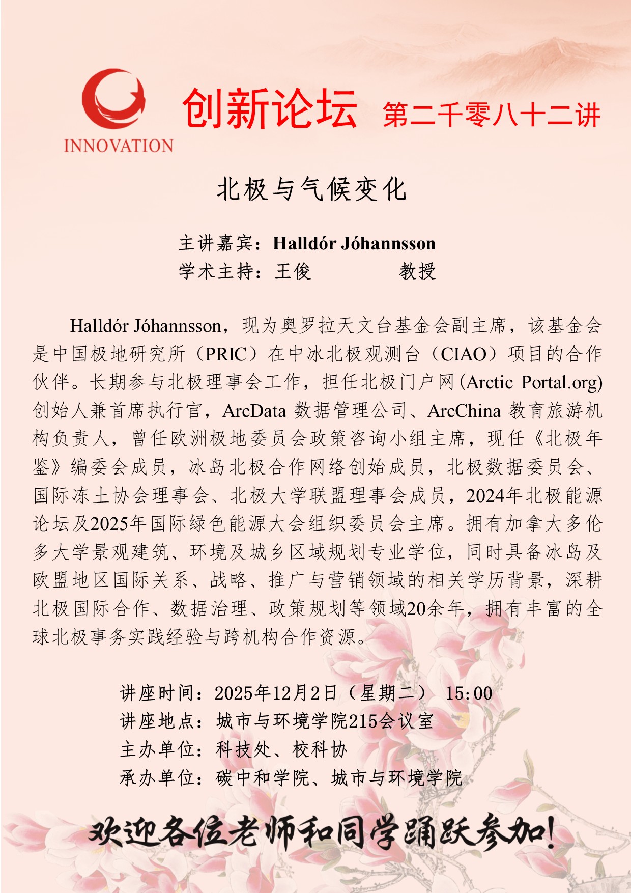 Halldór Jóhannsson 云博app官方在线入口创新论坛第二千零八十二讲:北极与气候变化 讲座时间 2025年12月2日(星期二) 15:00 讲座地点 城市与环境学院215会议室 讲座人介绍 Halldór Jóhannsson 讲座内容