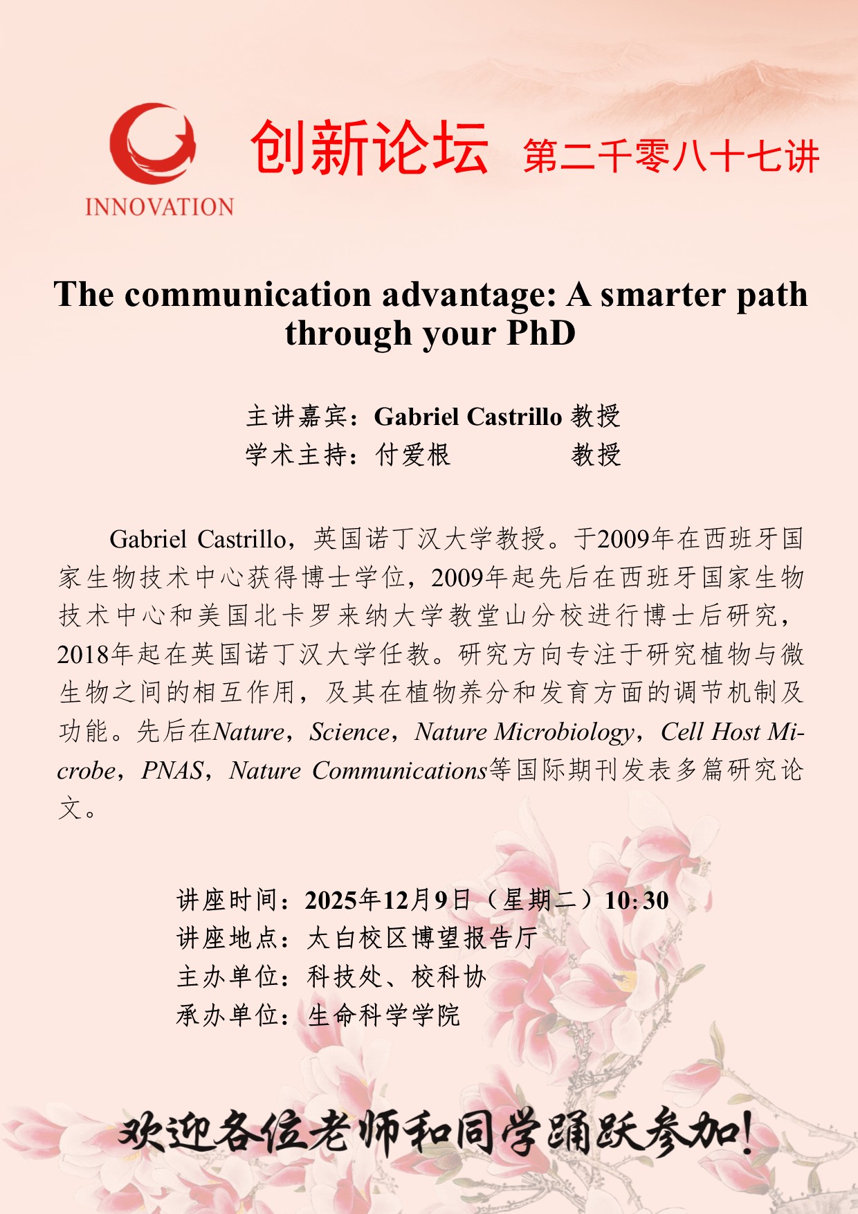 Gabriel Castrillo 教授 云博app官方在线入口创新论坛第二千零八十七讲:The communication advantage: A smarter path through your PhD 讲座时间 2025年12月9日(星期二)10:30 讲座地点 太白校区博望报告厅 讲座人介绍 Gabriel Castrillo 教授 讲座内容