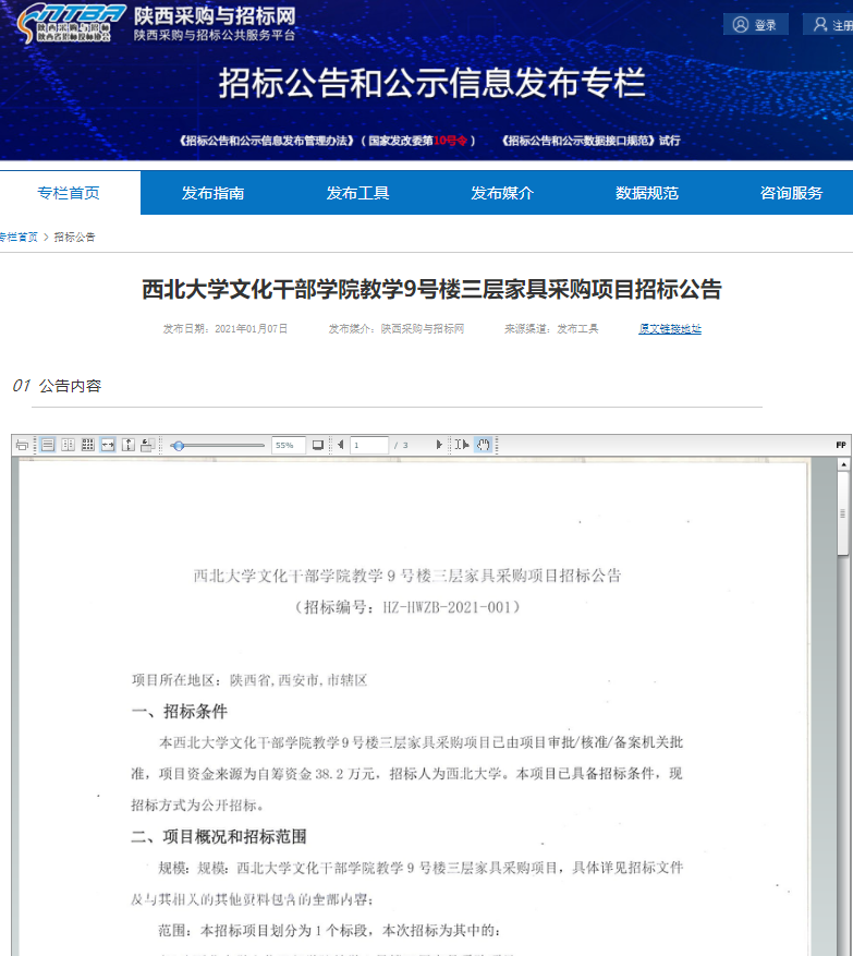 中华文化干部学院教学9号楼三层家具采购项目招标公告 作者: 编辑:万世超 时间:2021-01-07 原链接地址:http://bulletin.sntba.com/biddingBulletin/2021-01-07/261418.html