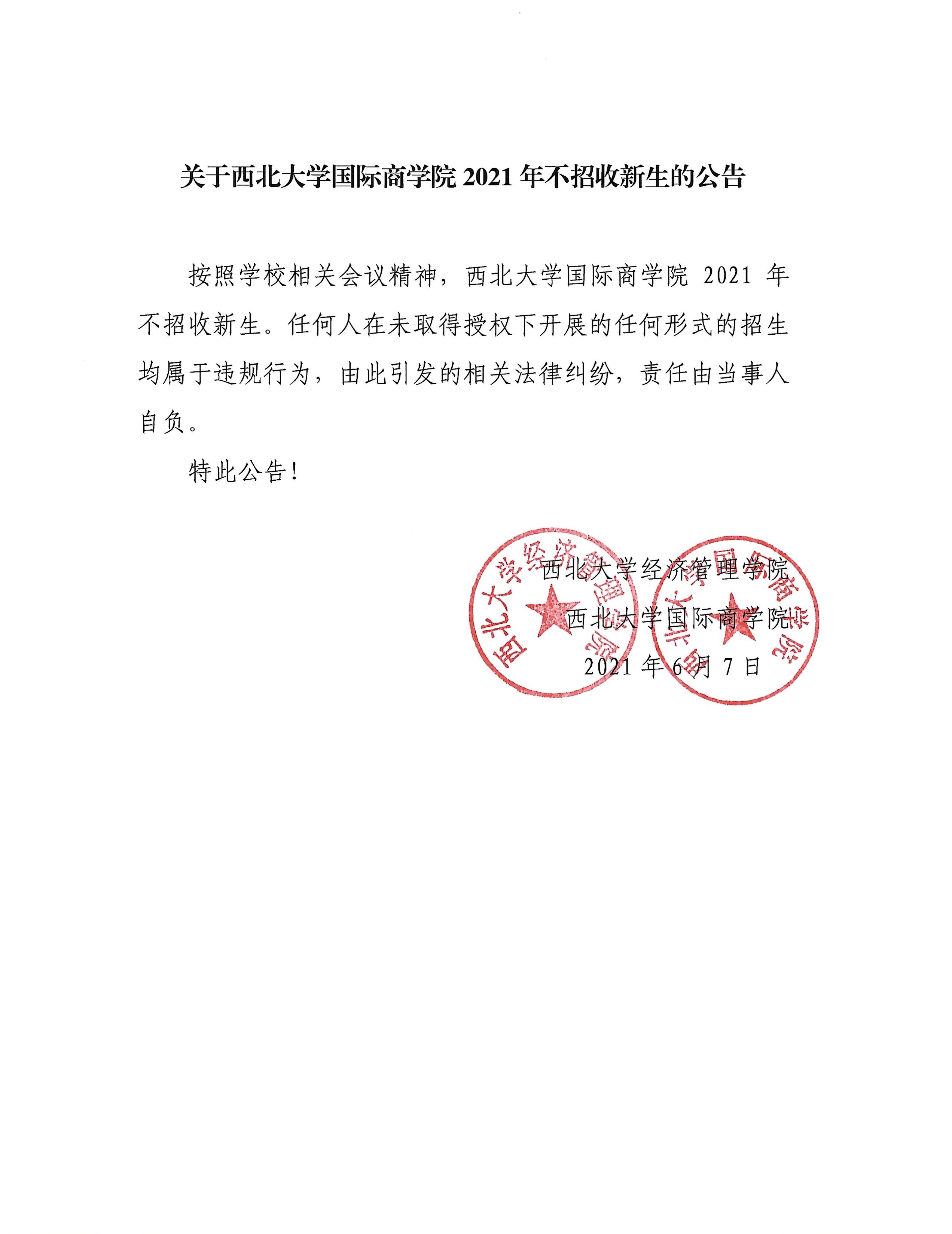 关于云博app官方在线入口国际商学院2021年不招收新生的公告