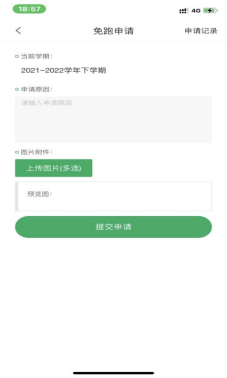 七、免跑申请:因疫情等原因未能按时返校者,于10月10日前在步道乐跑APP端提交免跑申请。申请免跑原因填写为:因疫情隔离未到校,特申请免跑;图片附件上传个人微信小程序行程卡截图。待返校后持院系出具的返校证明交体育教研部教务室(联系人:王老师,联系电话:88308757)办理复跑手续。操作如下:
