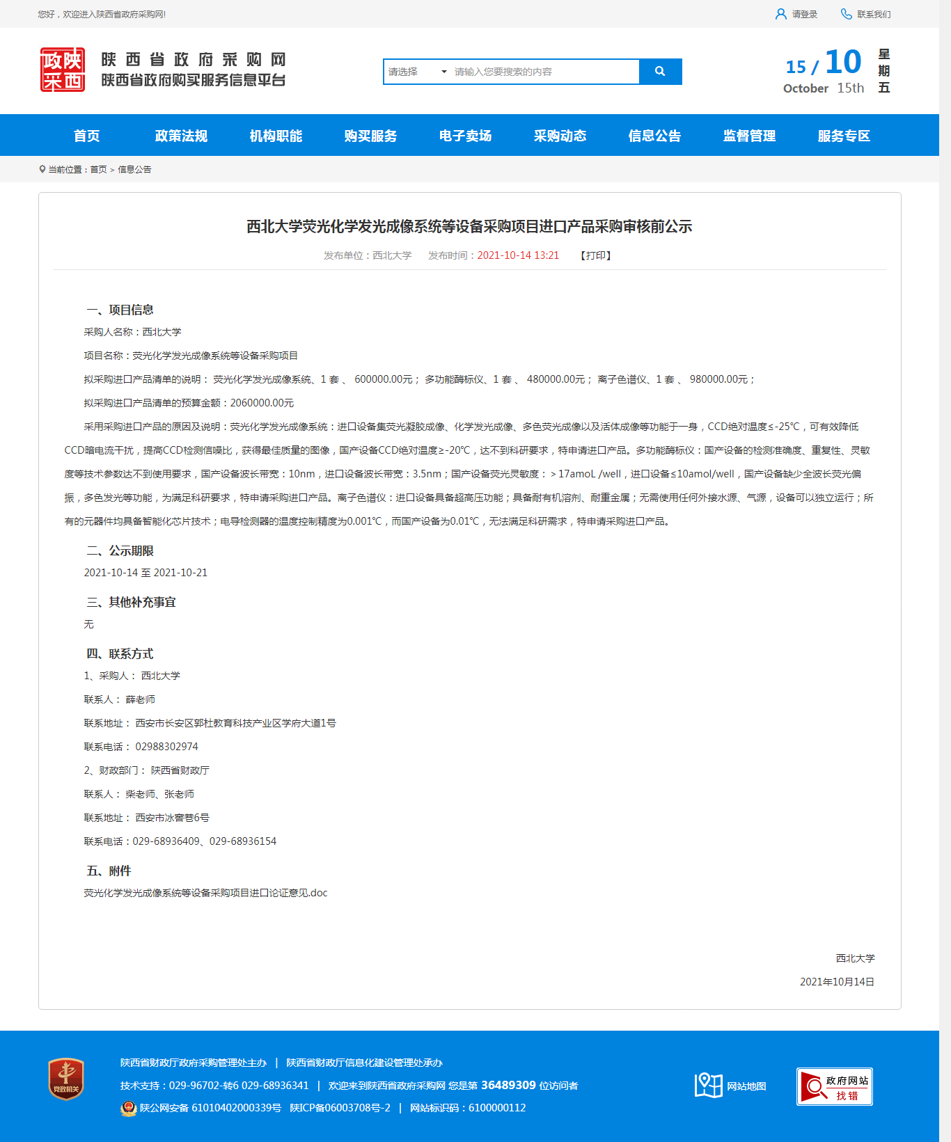 云博app官方在线入口荧光化学发光成像系统等设备采购项目进口产品采购审核前公示 作者: 编辑:采购与招标办公室 时间:2021-10-15 原公告地址:http://www.ccgp-shaanxi.gov.cn/notice/noticeDetail.do?noticeguid=8a85be327c20d508017c7d292ccd6e1a