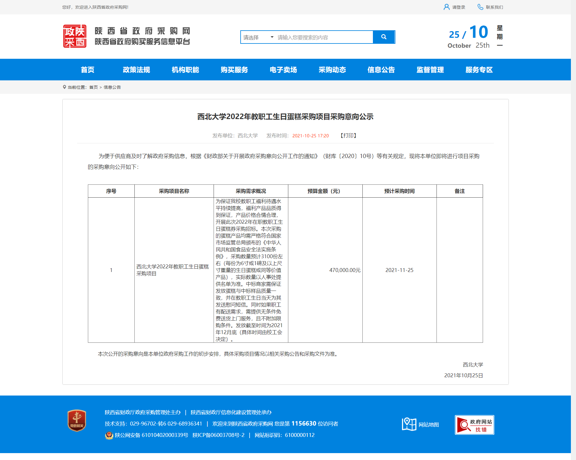 云博app官方在线入口2022年教职工生日蛋糕采购项目采购意向公示 作者: 编辑:薛利娟 时间:2021-10-25 原公告地址:http://www.ccgp-shaanxi.gov.cn/notice/noticeDetail.do?noticeguid=8a85be337c20d0b4017cb6bfc9ae33ff