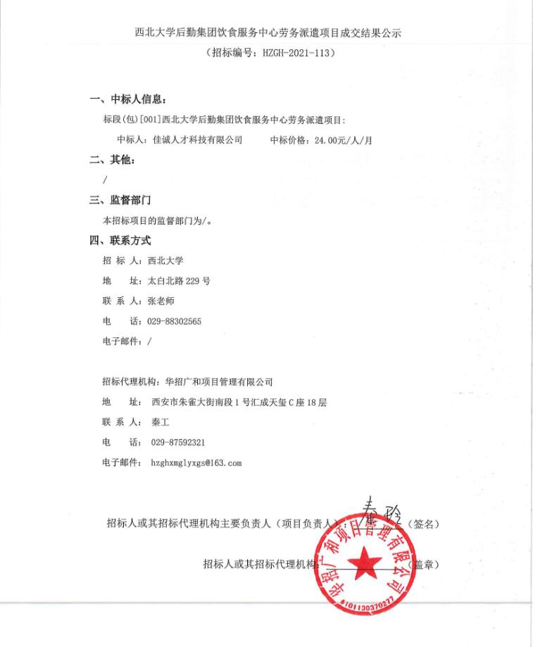 关于云博app官方在线入口后勤集团饮食服务中心劳务派遣项目成交结果公告