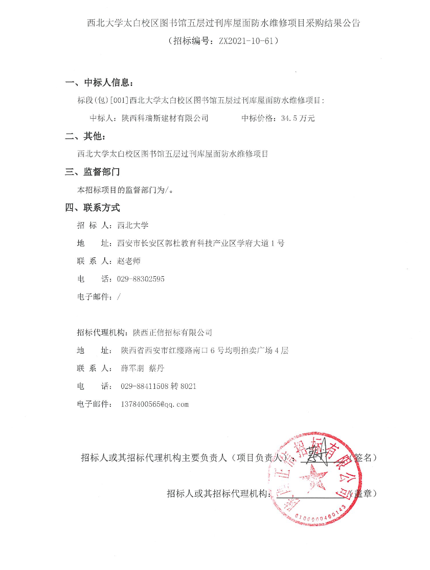 云博app官方在线入口太白校区图书馆五层过刊库屋面防水维修项目采购结果公告