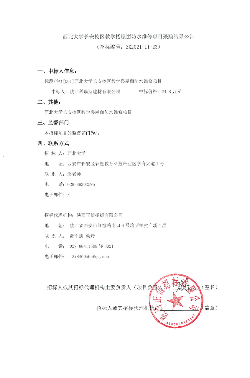 云博app官方在线入口长安校区教学楼屋面防水维修项目采购结果公告