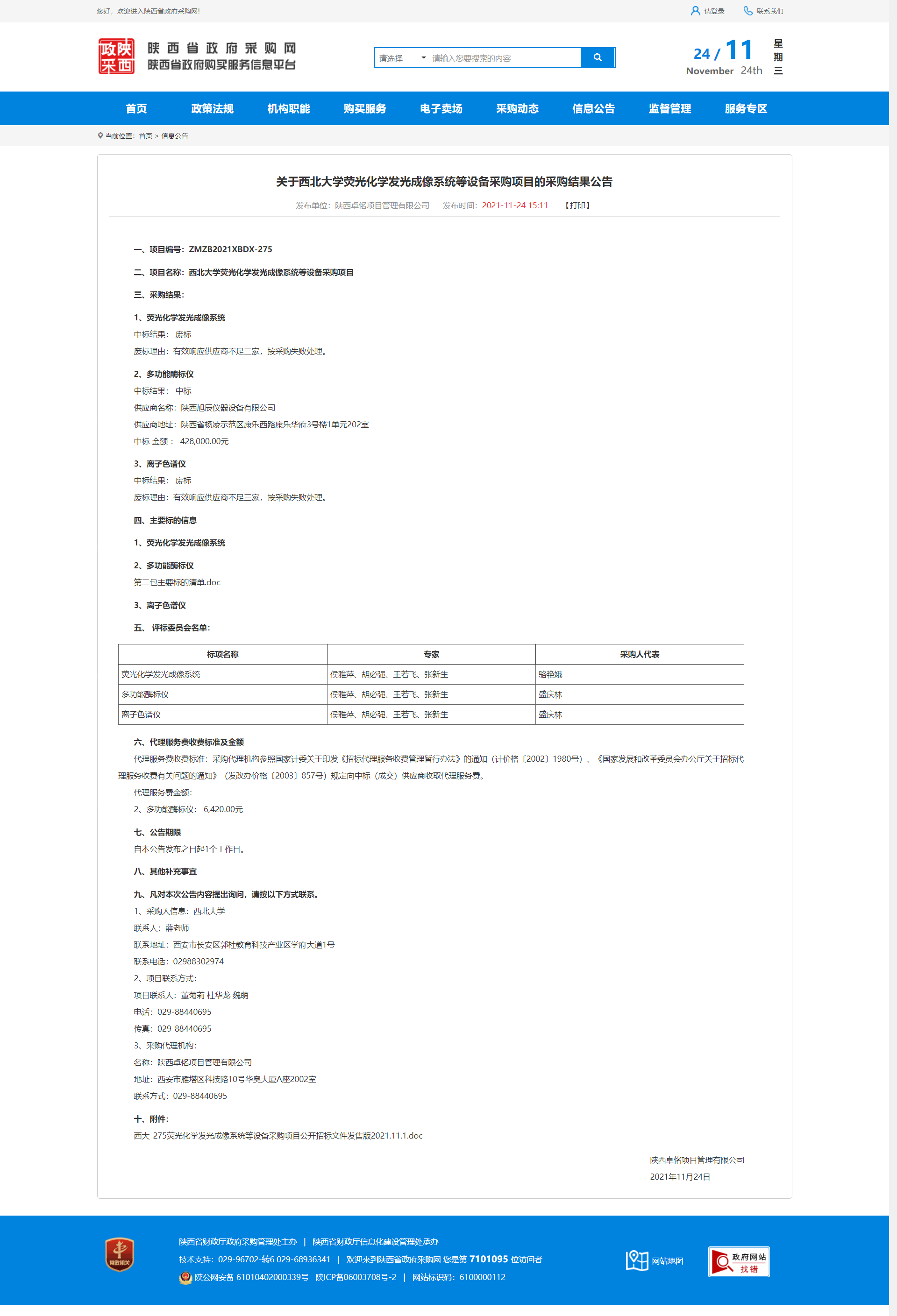 关于云博app官方在线入口荧光化学发光成像系统等设备采购项目的采购结果公告 作者: 编辑:薛利娟 时间:2021-11-24 原公告网址:http://www.ccgp-shaanxi.gov.cn/notice/noticeDetail.do?noticeguid=8a85be347d2d6f8d017d50c64ee42710