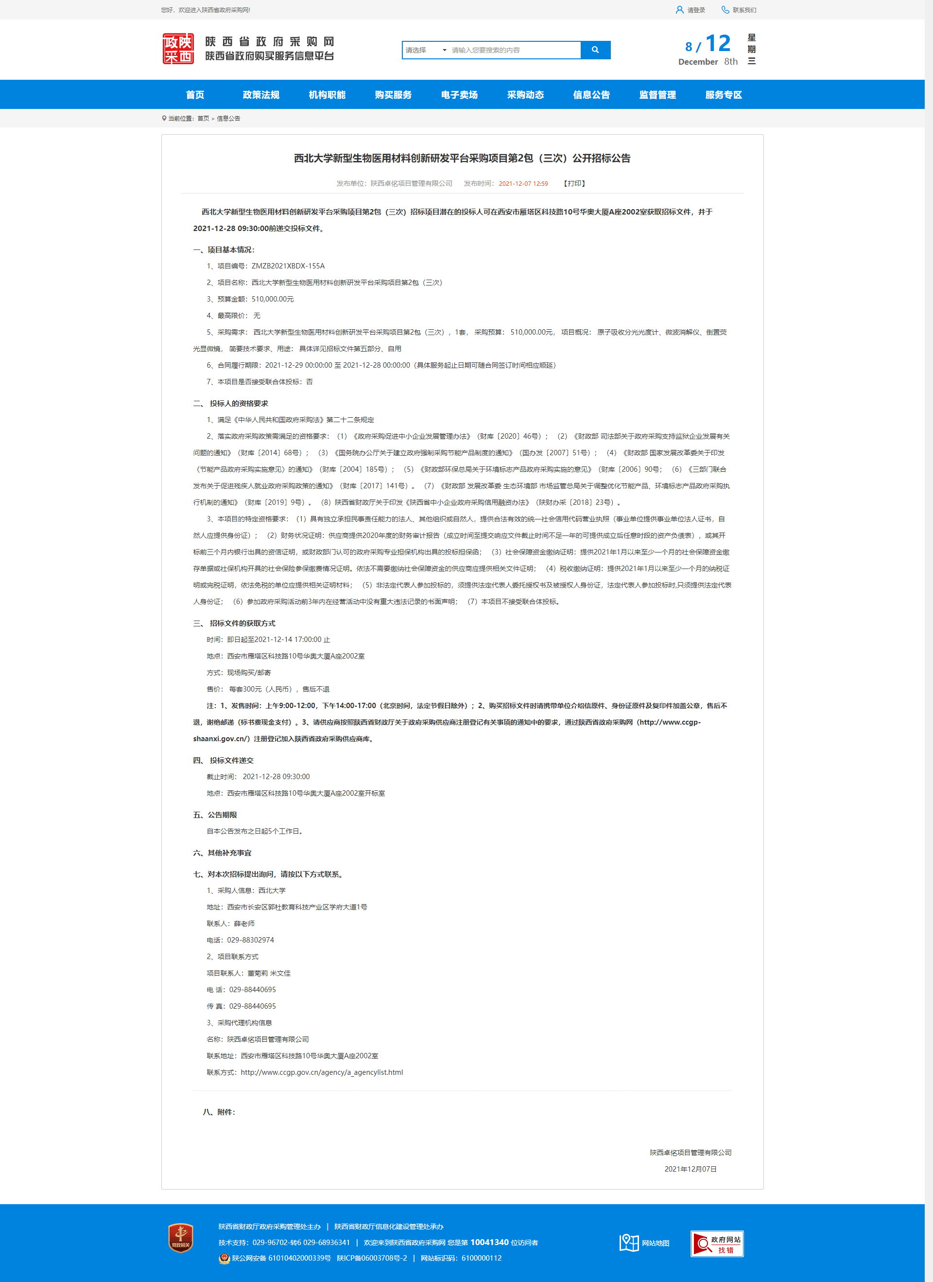 云博app官方在线入口新型生物医用材料创新研发平台采购项目第2包(三次)公开招标公告 作者: 编辑:薛利娟 时间:2021-12-08 原公告链接:http://www.ccgp-shaanxi.gov.cn/notice/noticeDetail.do?noticeguid=8a85be347d6a75c8017d92f597c94e2d