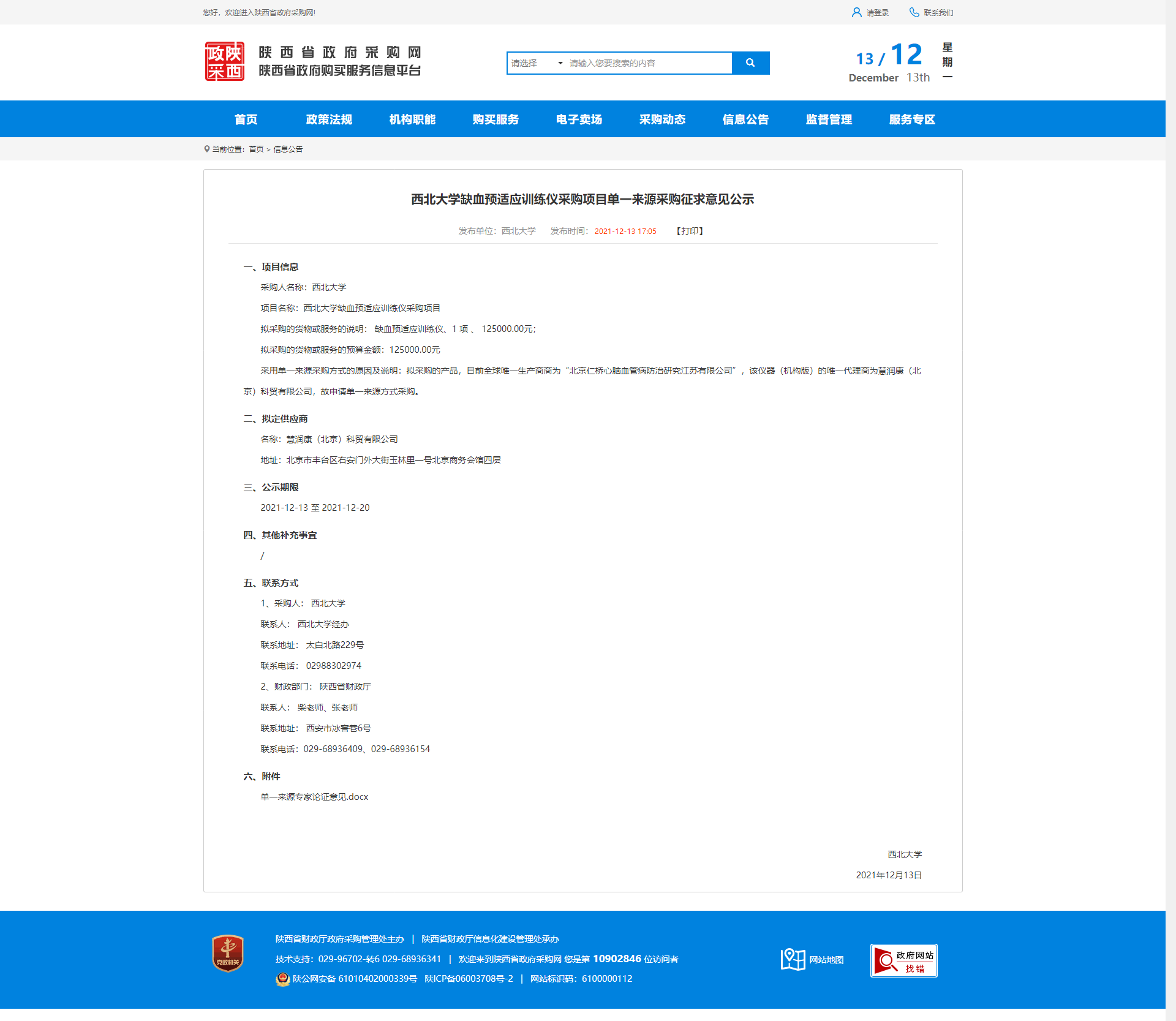 云博app官方在线入口缺血预适应训练仪采购项目单一来源采购征求意见公示 作者: 编辑:薛利娟 时间:2021-12-13 原公告链接:http://www.ccgp-shaanxi.gov.cn/notice/noticeDetail.do?noticeguid=8a85be337dace9ea017db302988240e3