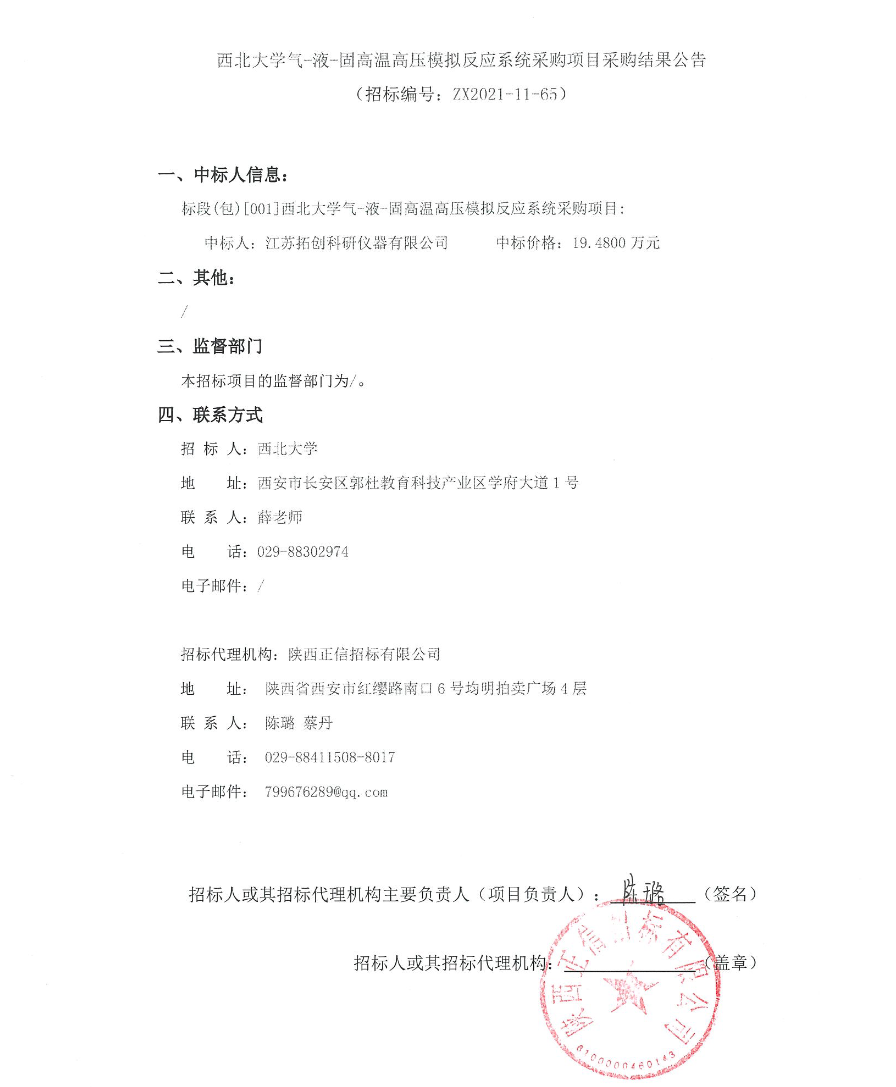 云博app官方在线入口气-液-固高温高压模拟反应系统采购项目采购结果公告