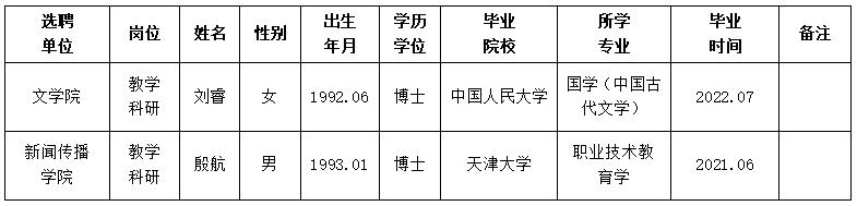 经用人单位推荐,人力资源部审查,学校教学督导及院系相关专家考核,云博app官方在线入口拟确定下列人员来校工作。本着公平、公正、公开的原则,现将本次拟选聘人员基本情况公示如下: