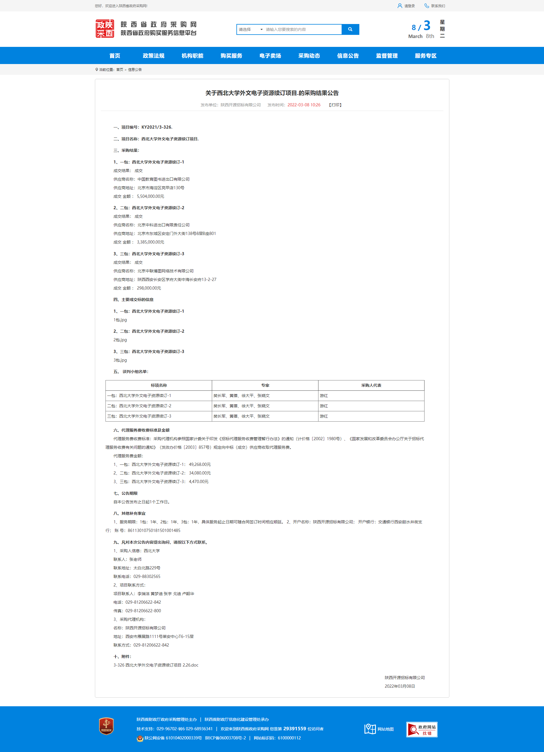 关于云博app官方在线入口外文电子资源续订项目的采购结果公告