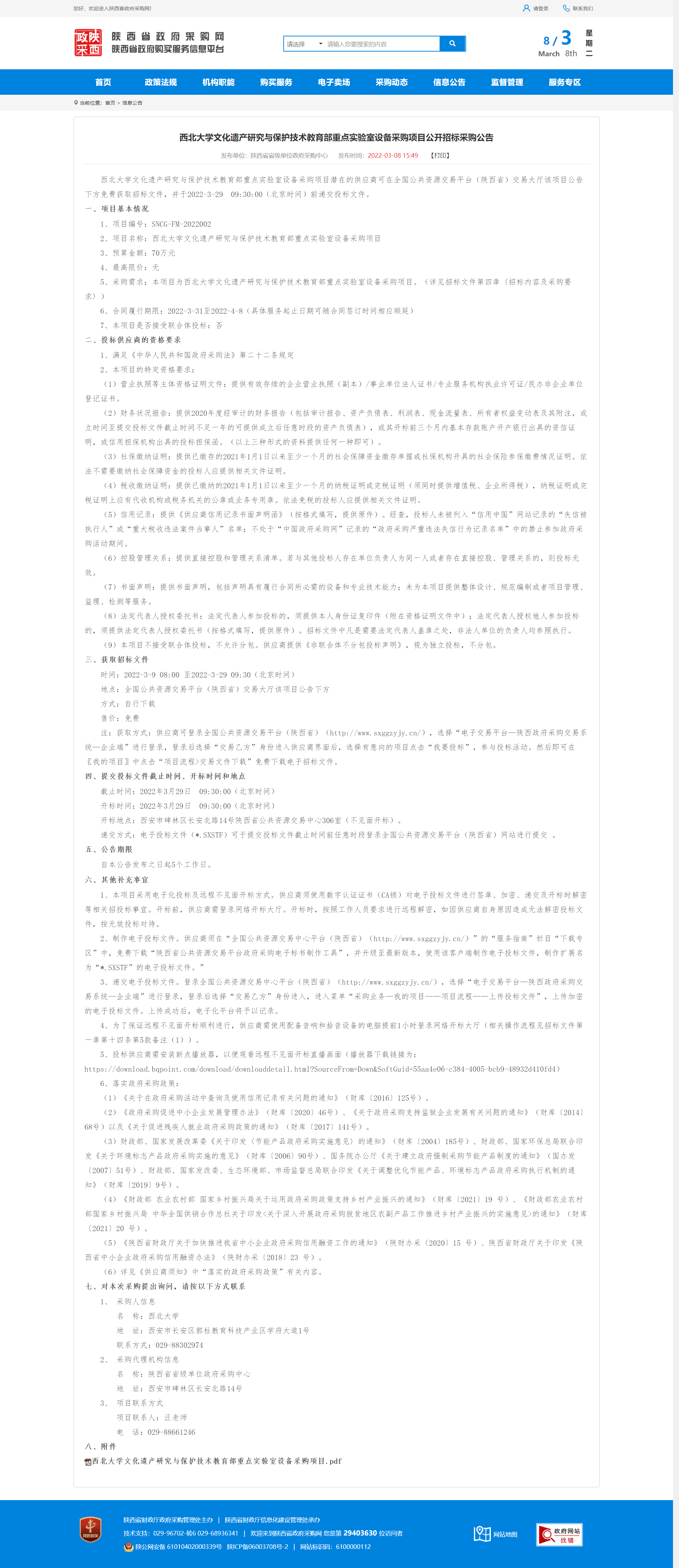 云博app官方在线入口文化遗产研究与保护技术教育部重点实验室设备采购项目公开招标采购公告 作者: 编辑:薛利娟 时间:2022-03-08 原公告链接:http://www.ccgp-shaanxi.gov.cn/notice/noticeDetail.do?noticeguid=8a85be387e22c8ad017f687dcc81045b