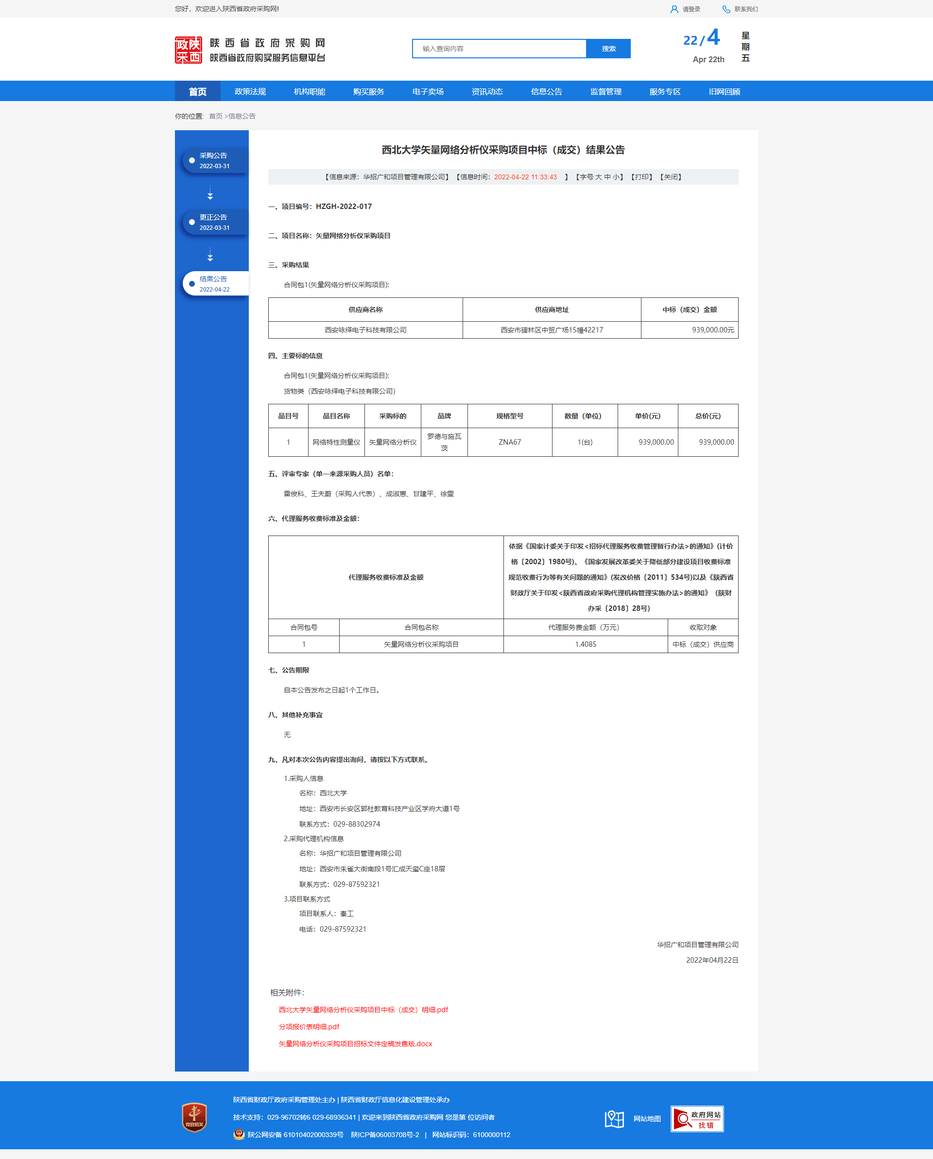 云博app官方在线入口矢量网络分析仪采购项目中标(成交)结果公告 作者: 编辑:薛利娟 时间:2022-04-22 原公告链接:http://www.ccgp-shaanxi.gov.cn/freecms/site/shaanxi/ggxx/info/2022/8a69c3a2803c3c1c01804f4570841746.html?noticeType=001021¬iceId=9725019f-c1ed-11ec-9a8e-08c0eb20c666