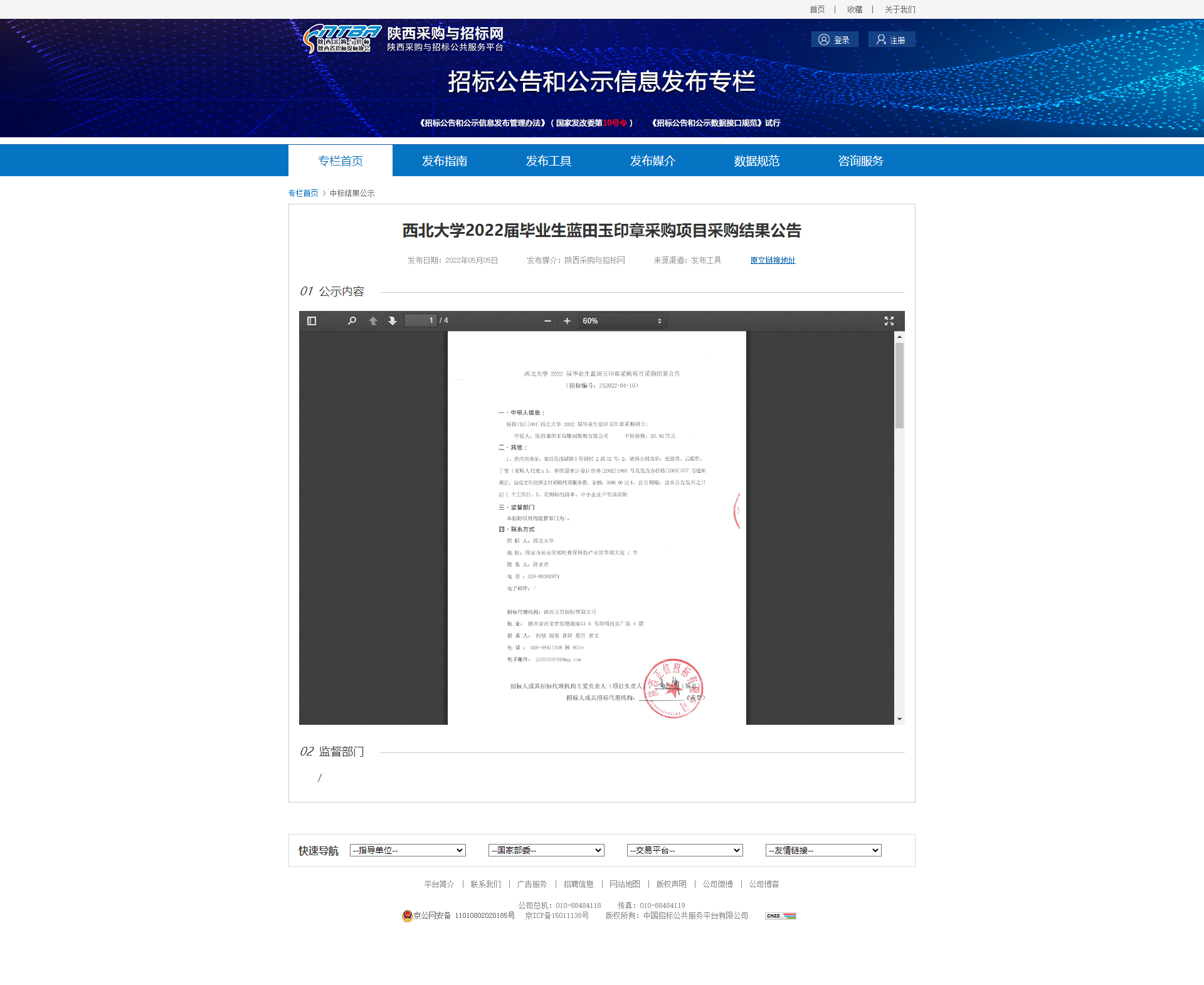 云博app官方在线入口2022届毕业生蓝田玉印章采购项目采购结果公告 作者: 编辑:薛利娟 时间:2022-05-05 原公告链接:http://bulletin.sntba.com/resultBulletin/2022-05-05/416048.html
