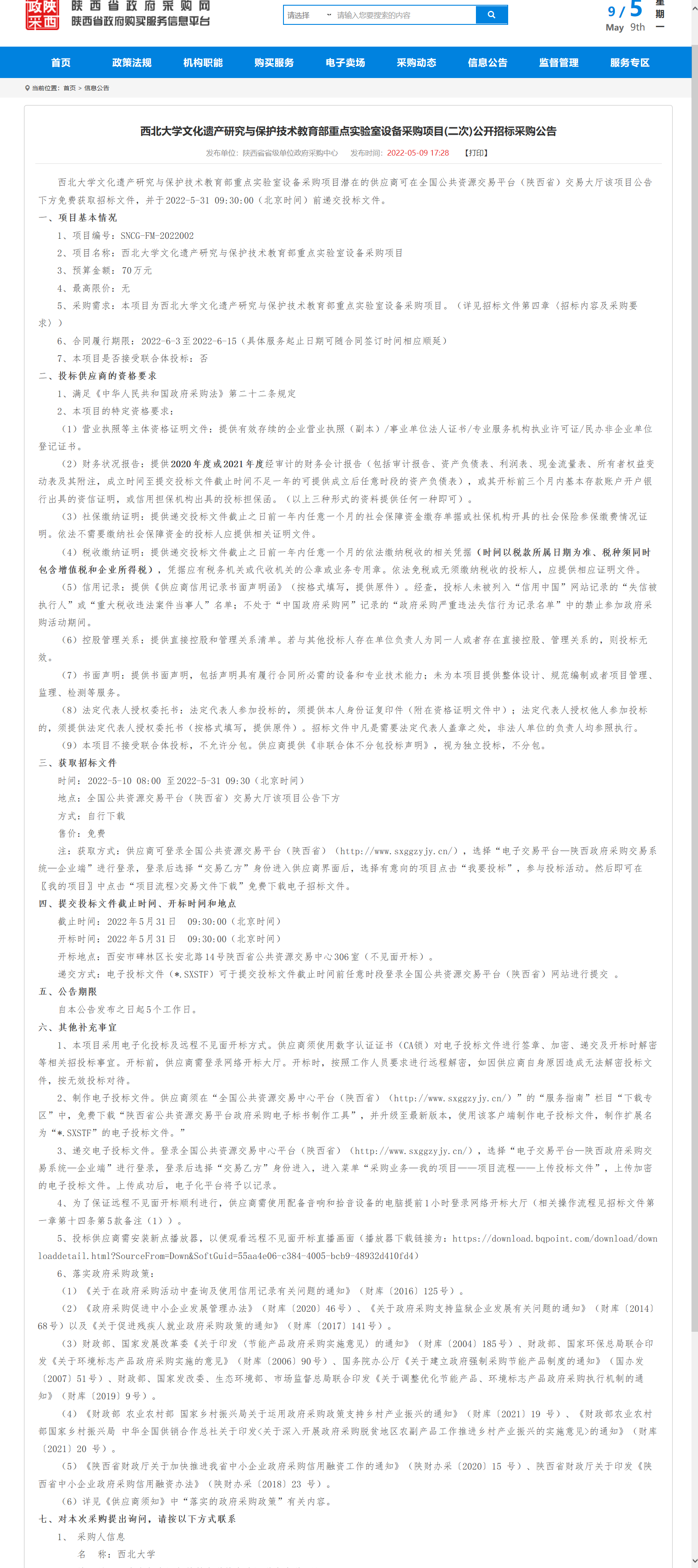 云博app官方在线入口文化遗产研究与保护技术教育部重点实验室设备采购项目(二次)公开招标采购公告 作者: 编辑:薛利娟 时间:2022-05-09 原公告链接:http://113.200.80.230/notice/noticeDetail.do?noticeguid=8a85be387f91f0bf0180a8225bed003f