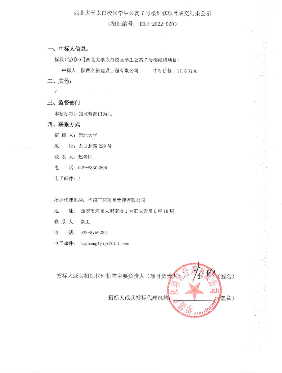 云博app官方在线入口太白校区学生公寓7号楼维修项目成交结果公示