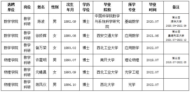 经用人单位推荐,人力资源部审查,学校教学督导及院系相关专家考核,云博app官方在线入口拟确定下列人员来校工作。本着公平、公正、公开的原则,现将本次拟选聘人员基本情况公示如下: