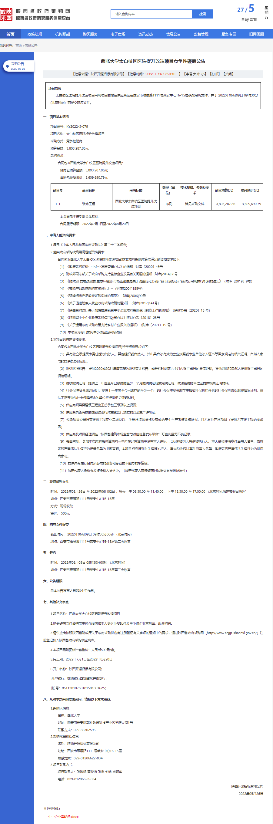 云博app官方在线入口太白校区医院提升改造项目竞争性磋商公告