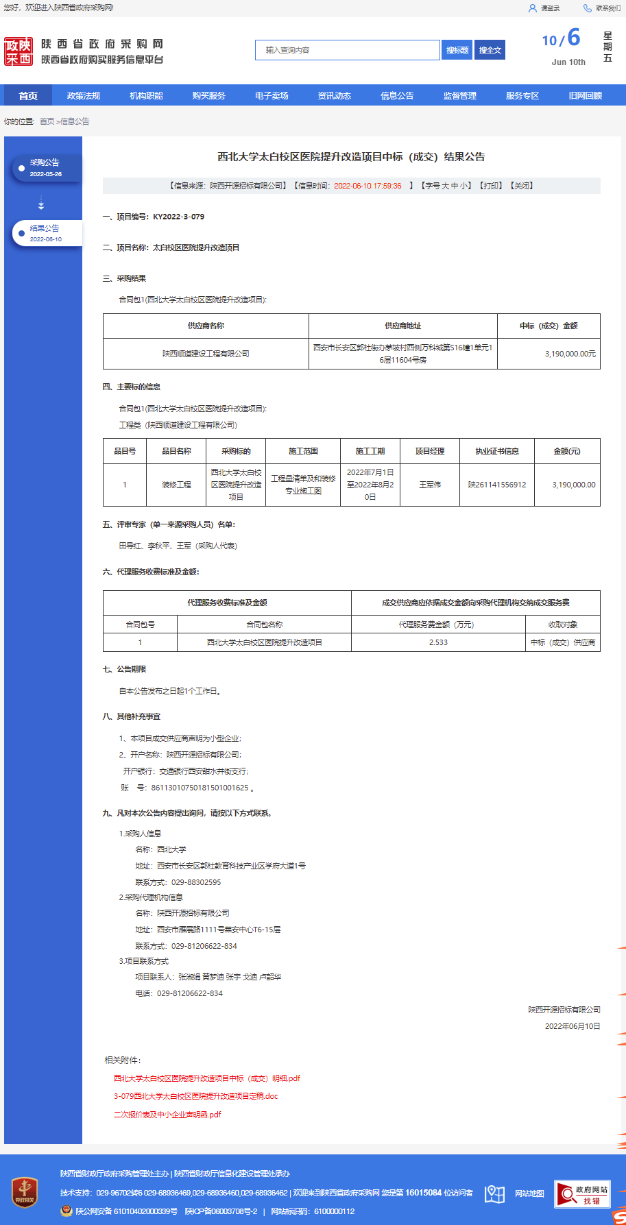 云博app官方在线入口太白校区医院提升改造项目中标(成交)结果公告