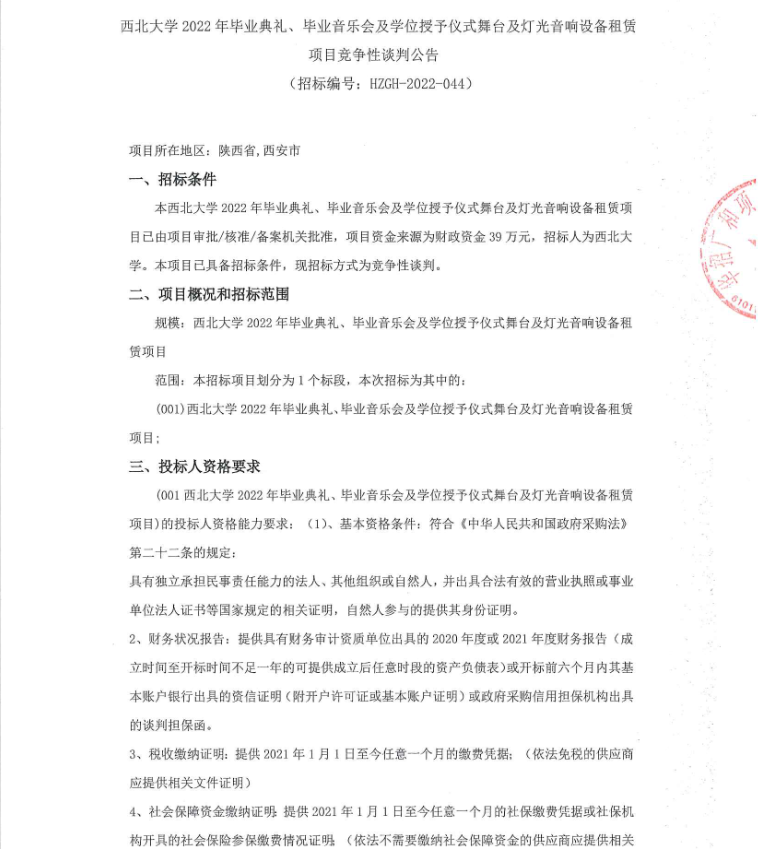 云博app官方在线入口2022年毕业典礼、毕业音乐会及学位授予仪式舞台及灯光音响设备租赁项目竞争性谈判公告