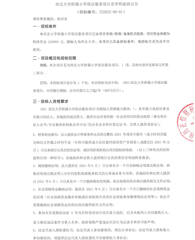 云博app官方在线入口附属小学保洁服务项目竞争性磋商公告