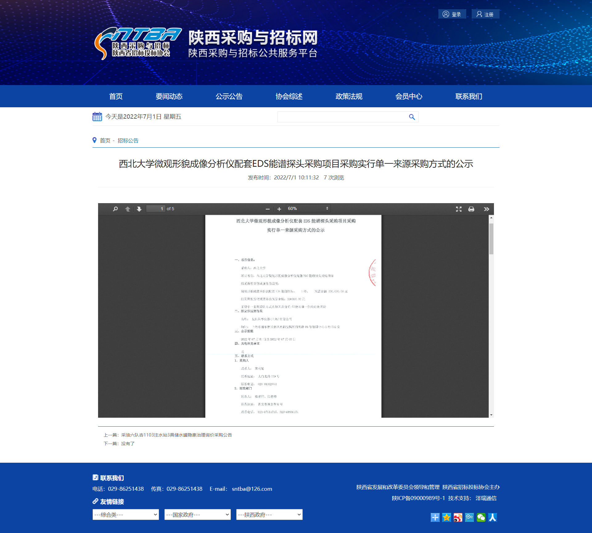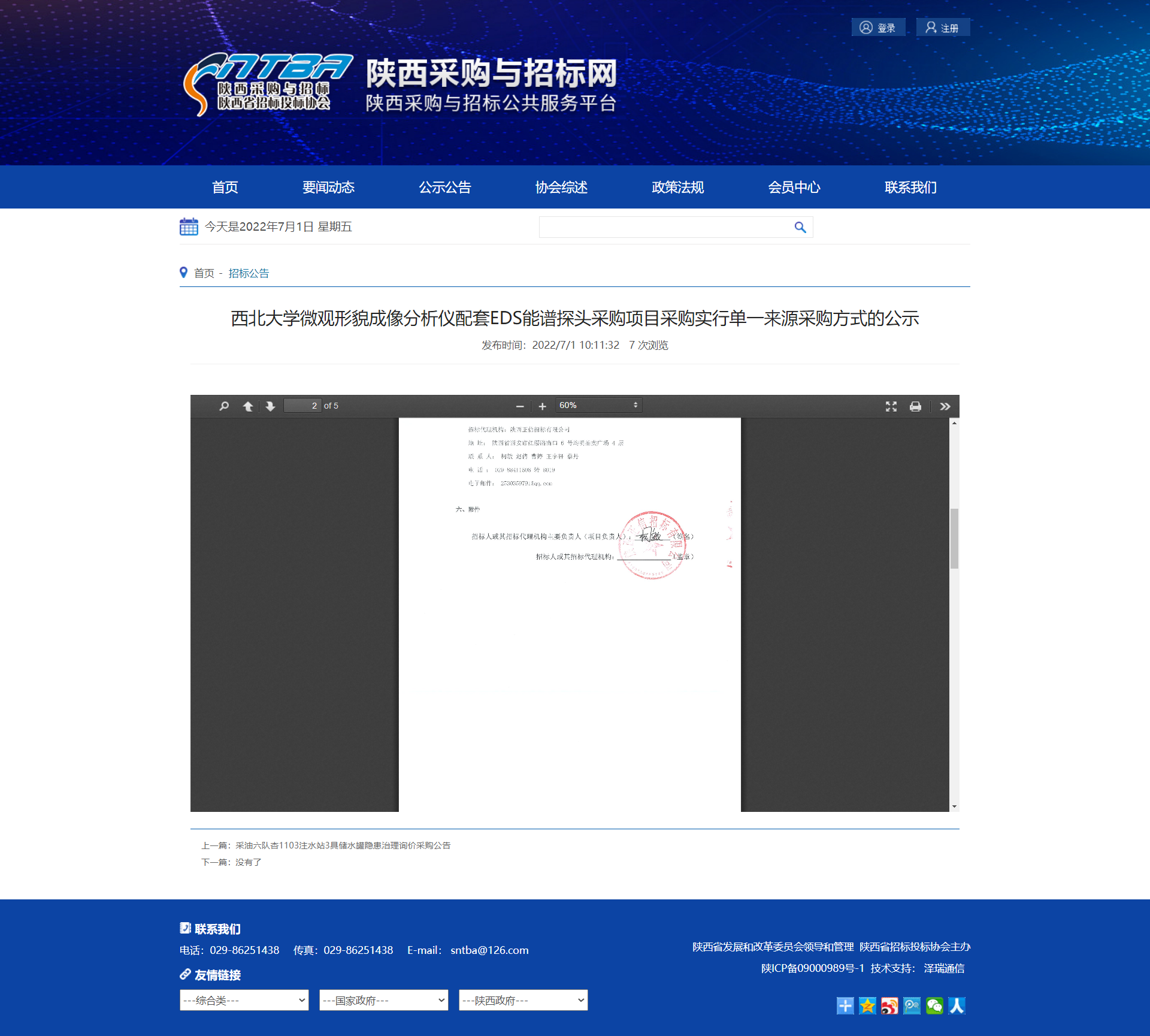 云博app官方在线入口微观形貌成像分析仪配套EDS能谱探头采购项目采购实行单一来源采购方式的公示 作者: 编辑:采购与招标办公室 时间:2022-07-01 原公告链接:http://www.sntba.com/website/gg_show.aspx?id=216192