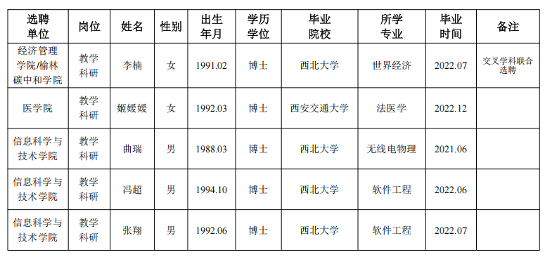各单位或个人如对上述人选存有疑问,可在2022年7月12日前以书面形式向人力资源部反映。反映材料须实名提交,以便我部核实并反馈,我们将严格保密。(公示期结束后,如无异议,本人持三方协议、身份证、毕业生就业推荐表在岗位聘用办公室签订就业协议;或将上述材料邮寄至我部,邮寄地址:陕西省西安市长安区学府大街1号云博app官方在线入口人力资源部。)