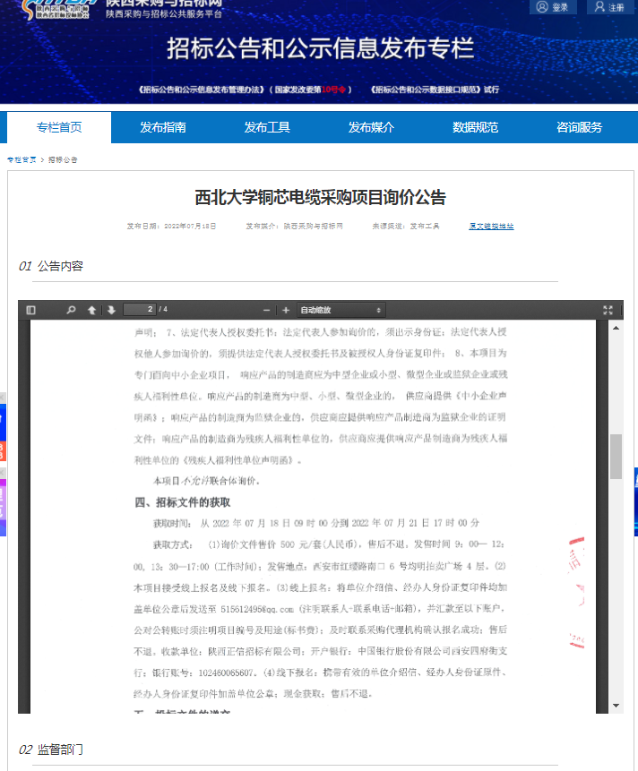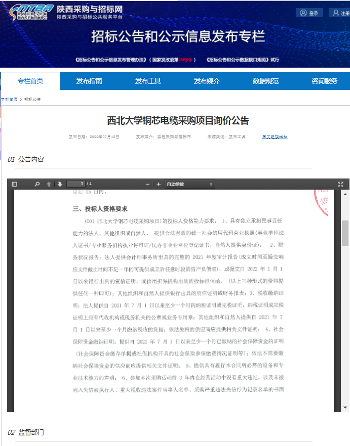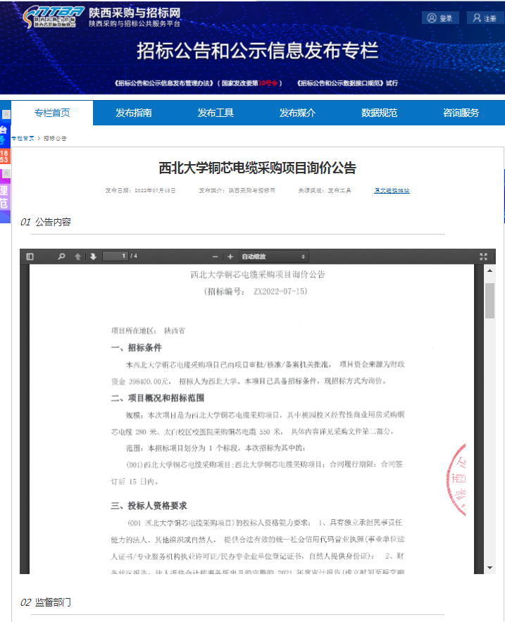 云博app官方在线入口铜芯电缆采购项目询价公告 作者: 编辑:薛利娟 时间:2022-07-18 原公告链接:http://bulletin.sntba.com/biddingBulletin/2022-07-18/449060.html