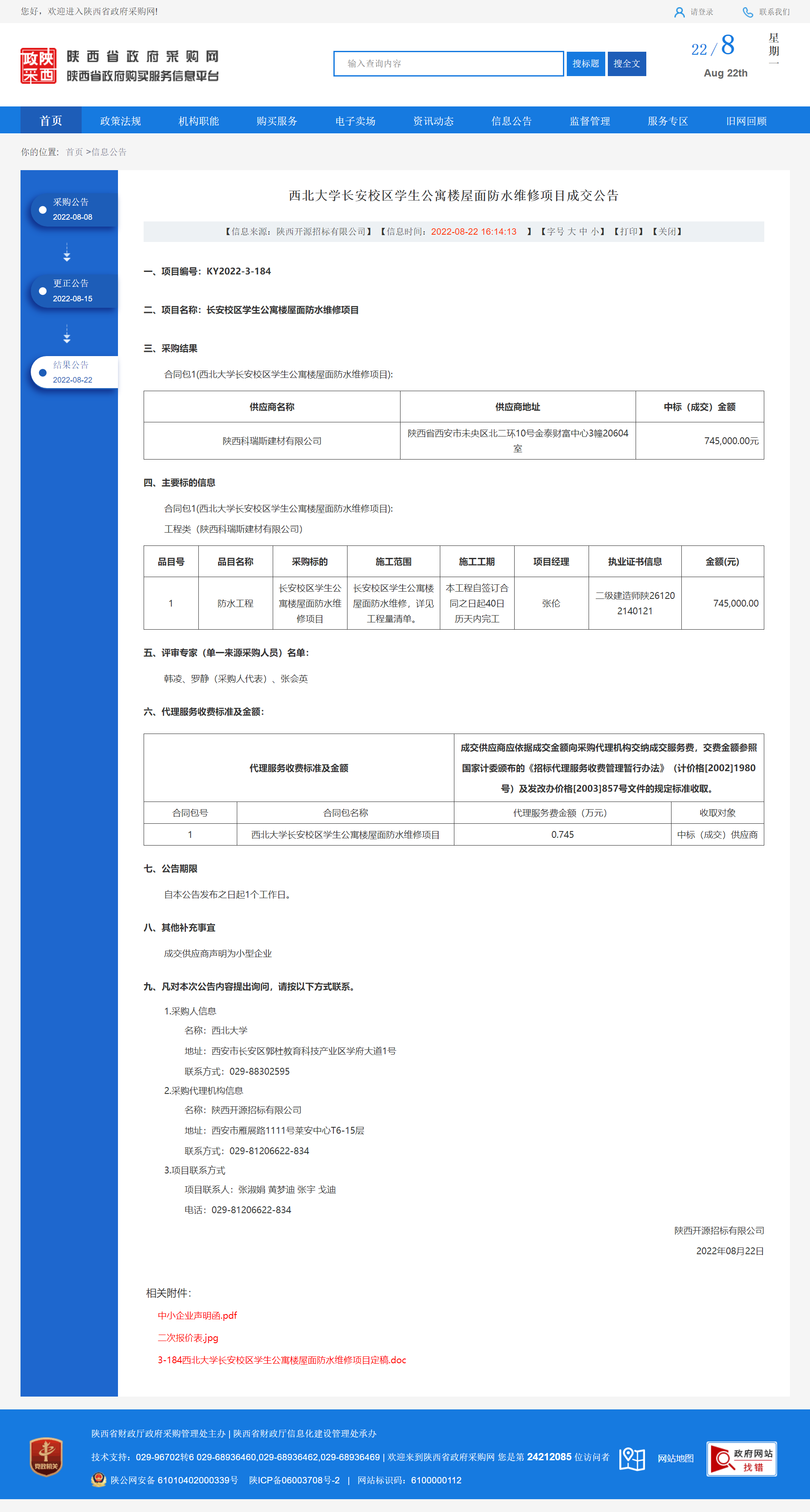 云博app官方在线入口长安校区学生公寓楼屋面防水维修项目成交公告