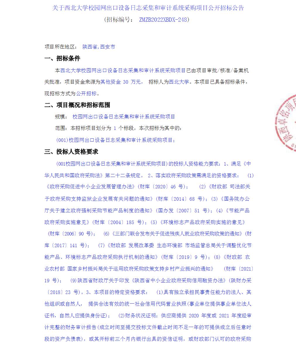 关于云博app官方在线入口校园网出口设备日志采集和审计系统采购项目公开招标公告