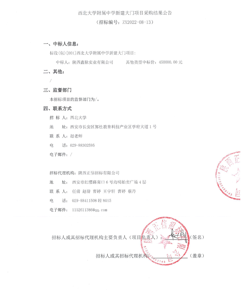 云博app官方在线入口附属中学新建大门项目采购结果公告