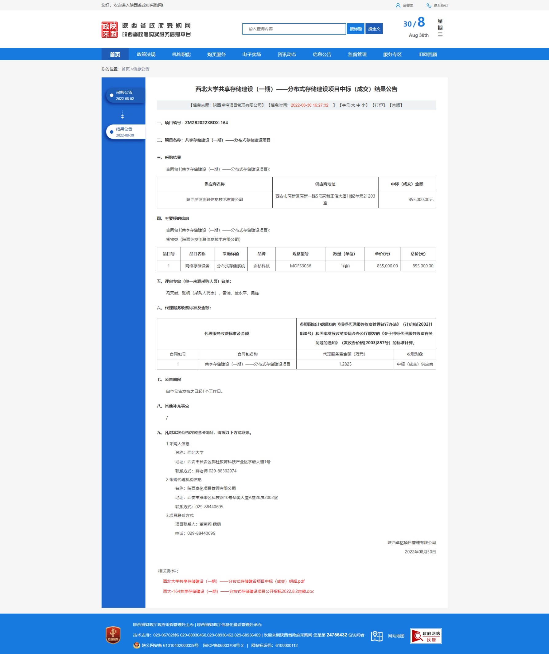 云博app官方在线入口共享存储建设(一期)——分布式存储建设项目中标(成交)结果公告 作者: 编辑:采购与招标办公室 时间:2022-08-30 原公告链接:http://www.ccgp-shaanxi.gov.cn/freecms/site/shaanxi/ggxx/info/2022/8a69c59682a320a40182eda593c576ce.html?noticeType=001021¬iceId=1143663d-283e-11ed-9a8e-08c0eb20c666