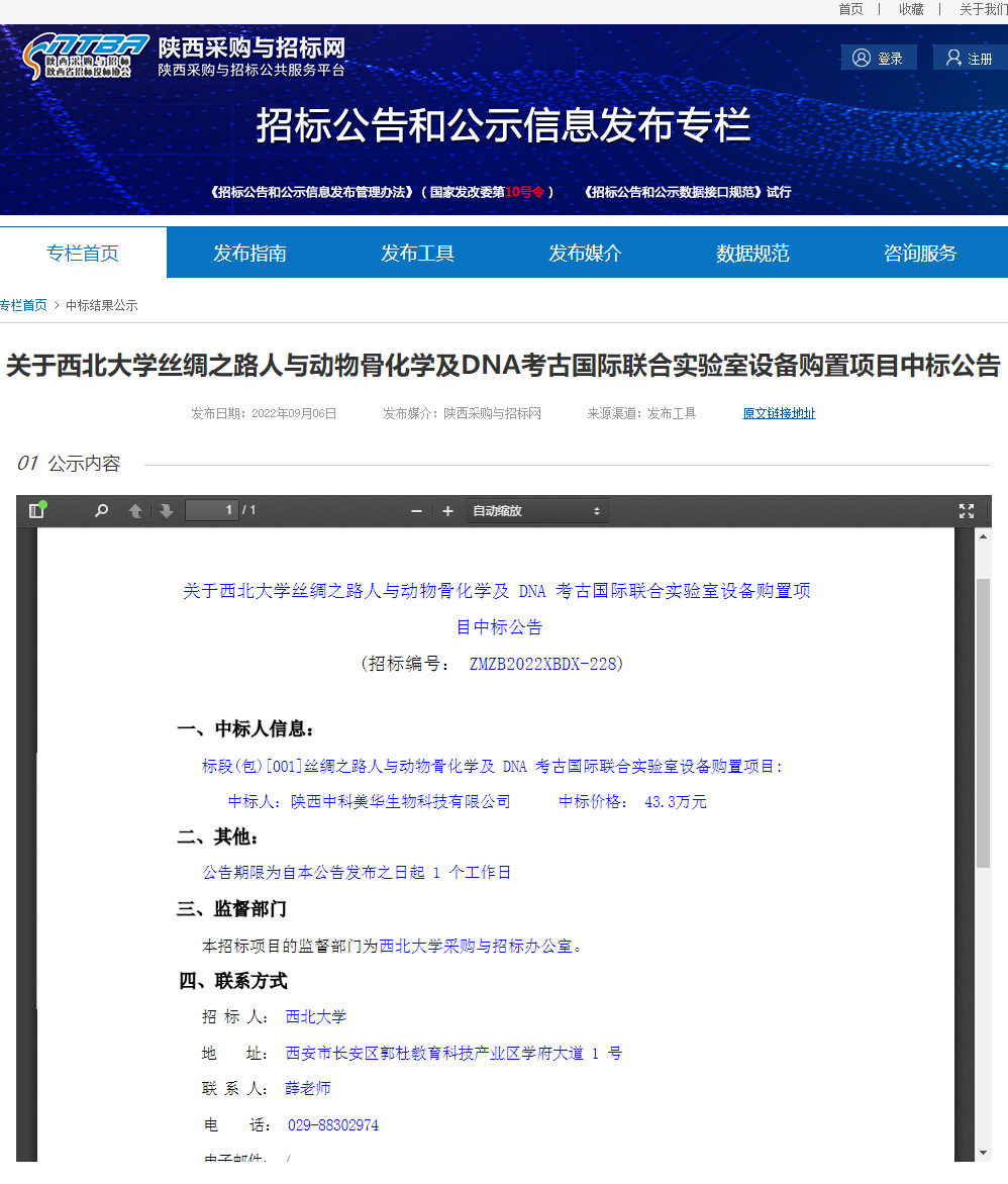 关于云博app官方在线入口丝绸之路人与动物骨化学及DNA考古国际联合实验室设备购置项目中标公告 作者: 编辑:采购与招标办公室 时间:2022-09-06 原公告链接:http://bulletin.sntba.com/resultBulletin/2022-09-06/470905.html