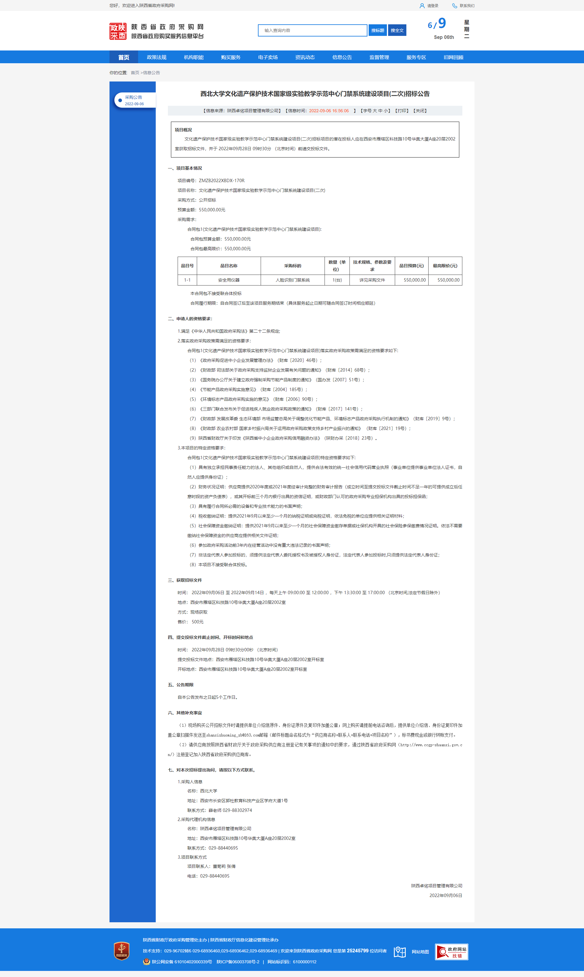 云博app官方在线入口文化遗产保护技术国家级实验教学示范中心门禁系统建设项目(二次)招标公告 作者: 编辑:采购与招标办公室 时间:2022-09-06 原公告链接:http://www.ccgp-shaanxi.gov.cn/freecms/site/shaanxi/ggxx/info/2022/8a69c63182a32538018311f9ef2e1370.html?noticeType=001011¬iceId=3d8b61ff-2dc2-11ed-9a8e-08c0eb20c666