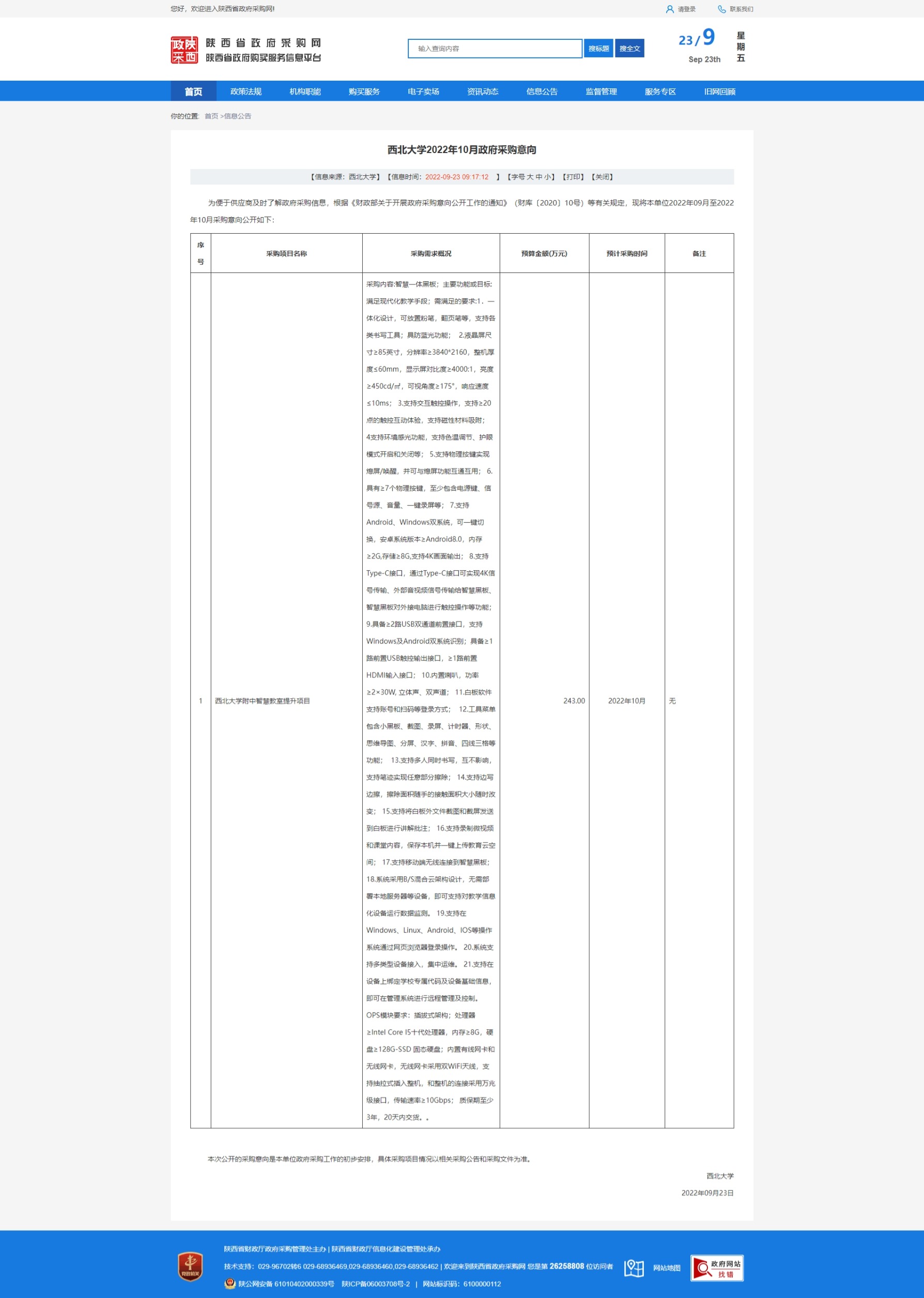 云博app官方在线入口2022年10月政府采购意向 作者: 编辑:采购与招标办公室 时间:2022-09-23 原公告链接:http://www.ccgp-shaanxi.gov.cn/freecms/site/shaanxi/ggxx/info/2022/8a69c8478367db9a018367e5fec9035c.html?noticeType=59¬iceId=f95e3cc6-3add-11ed-9a8e-08c0eb20c666