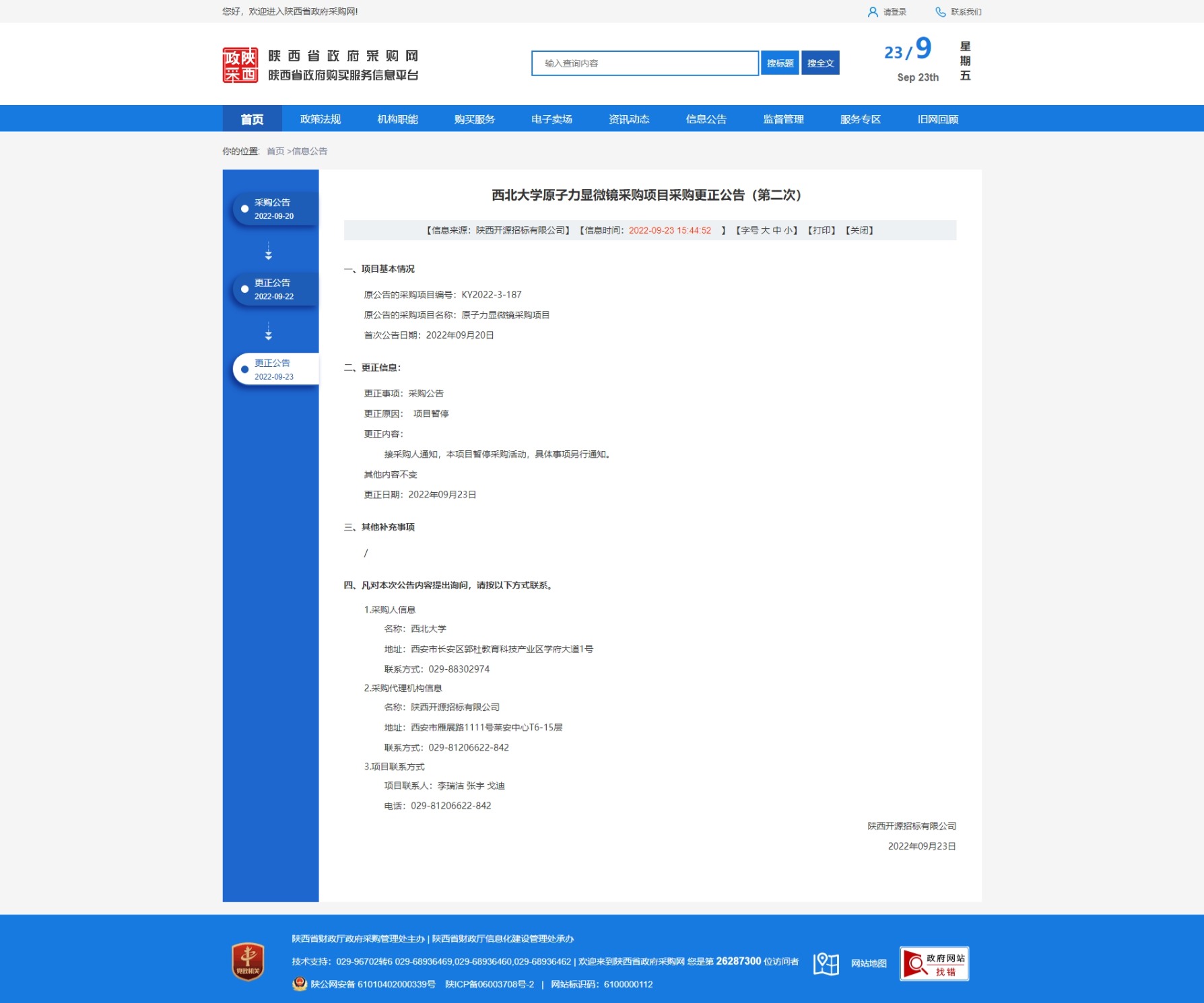 云博app官方在线入口原子力显微镜采购项目采购更正公告(第二次) 作者: 编辑:采购与招标办公室 时间:2022-09-23 原公告链接:http://www.ccgp-shaanxi.gov.cn/freecms/site/shaanxi/ggxx/info/2022/8a69c78482a320a201836942a02842b0.html?noticeType=001031¬iceId=22ff8d4b-3b14-11ed-9a8e-08c0eb20c666