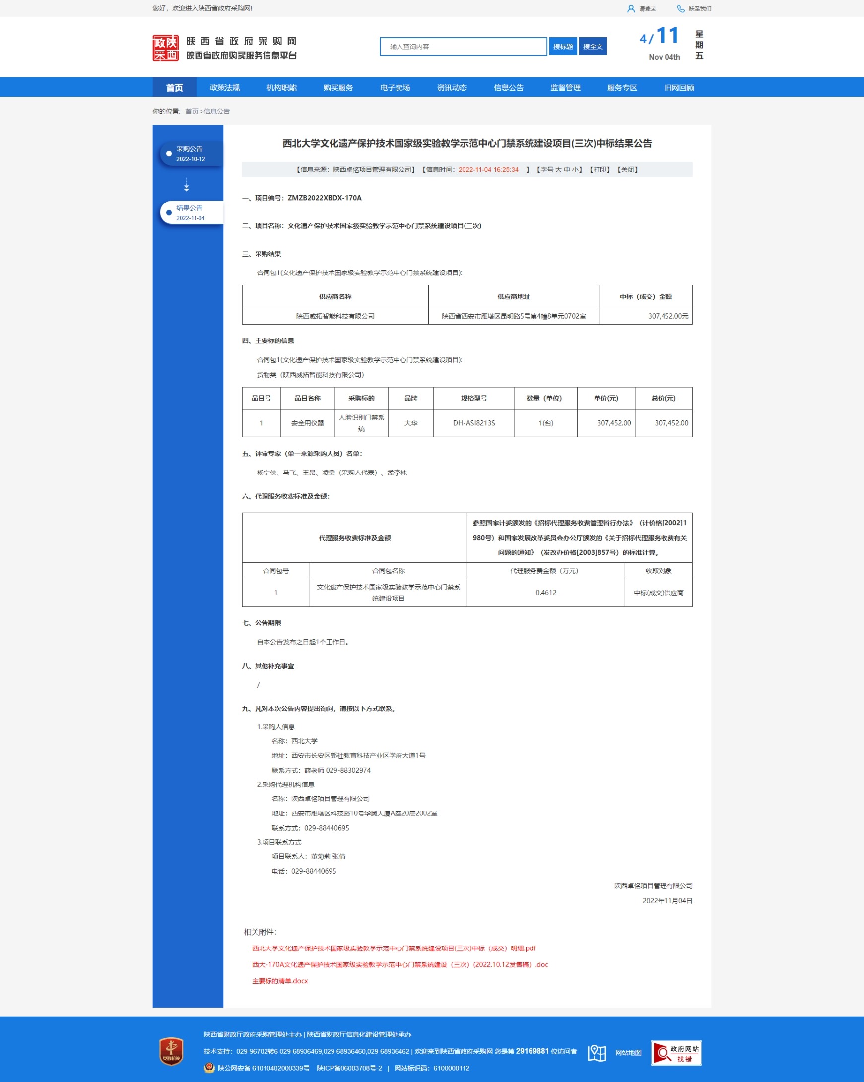 云博app官方在线入口文化遗产保护技术国家级实验教学示范中心门禁系统建设项目(三次)中标结果公告 作者: 编辑:采购与招标办公室 时间:2022-11-04 原公告链接:http://www.ccgp-shaanxi.gov.cn/freecms/site/shaanxi/ggxx/info/2022/8a69c1948405afd90184419c635f2343.html?noticeType=001021¬iceId=de821f62-5c1a-11ed-9a8e-08c0eb20c666