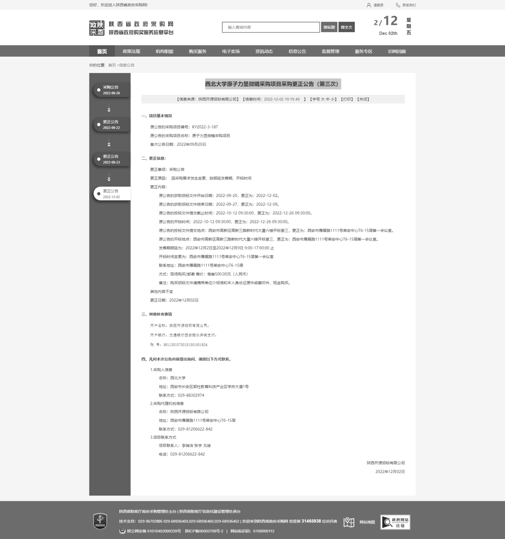 云博app官方在线入口原子力显微镜采购项目采购更正公告(第三次) 作者: 编辑:采购与招标办公室 时间:2022-12-02 原公告链接:http://www.ccgp-shaanxi.gov.cn/freecms/site/shaanxi/ggxx/info/2022/8a69c4c88405ac2f0184d27d406137d7.html?noticeType=001031¬iceId=e90e6533-7233-11ed-9a8e-08c0eb20c666