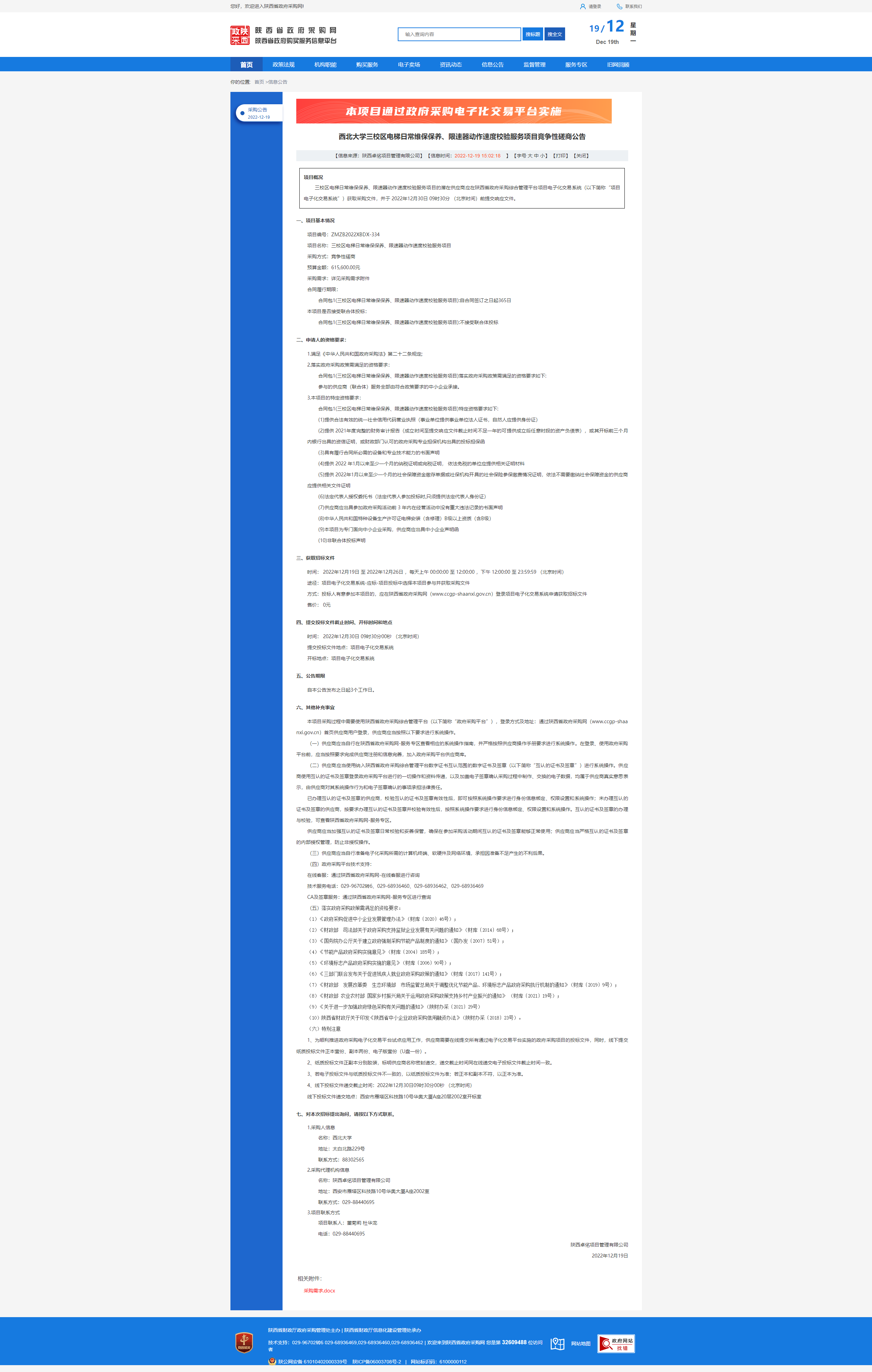 云博app官方在线入口三校区电梯日常维保保养、限速器动作速度校验服务项目竞争性磋商公告