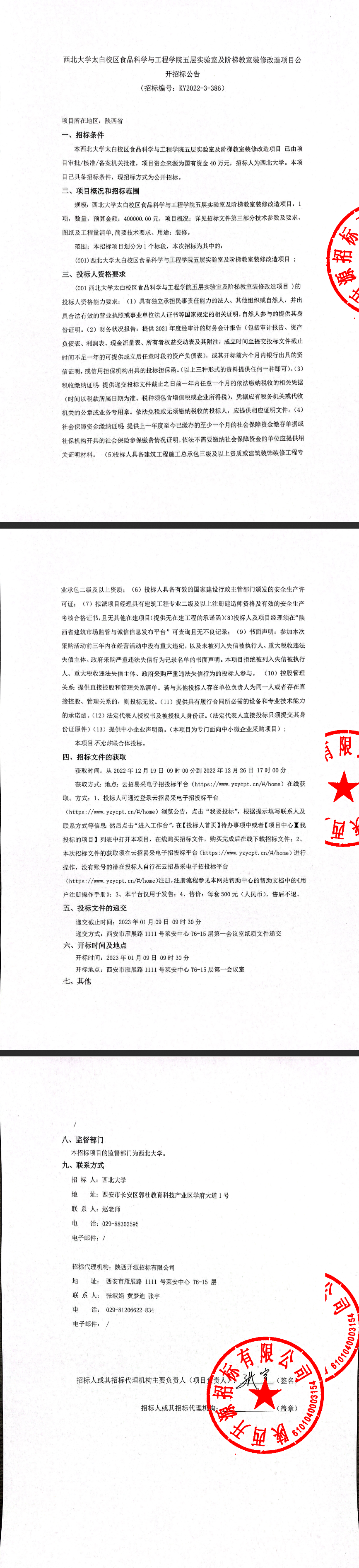云博app官方在线入口太白校区食品科学与工程学院五层实验室及阶梯教室装修改造项目公开招标公告
