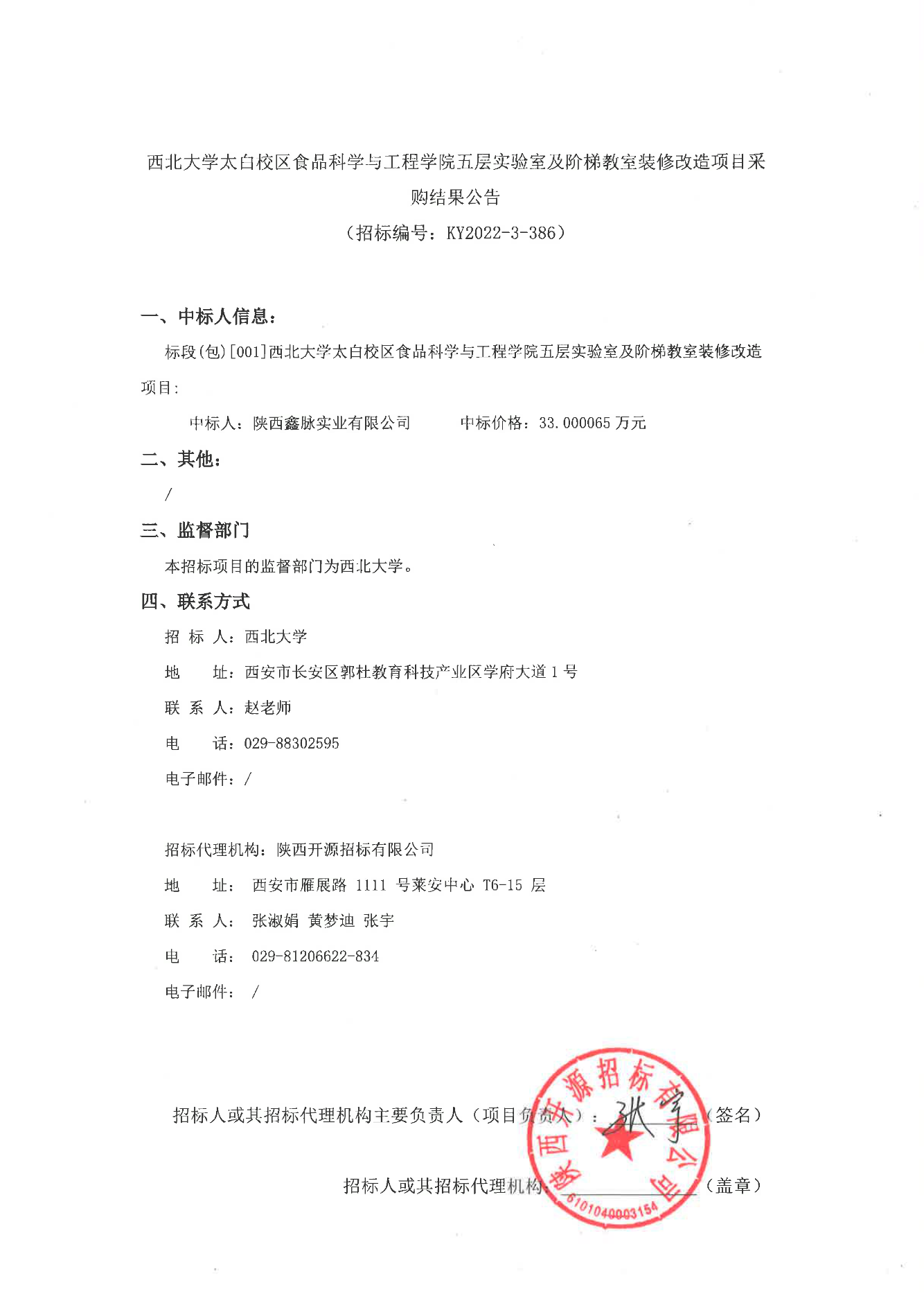 云博app官方在线入口太白校区食品科学与工程学院五层实验室及阶梯教室装修改造项目采购结果公告