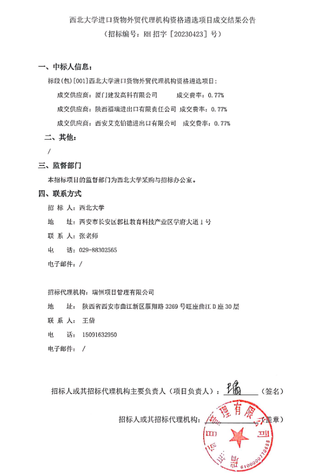 云博app官方在线入口进口货物外贸代理机构资格遴选项目成交结果公告