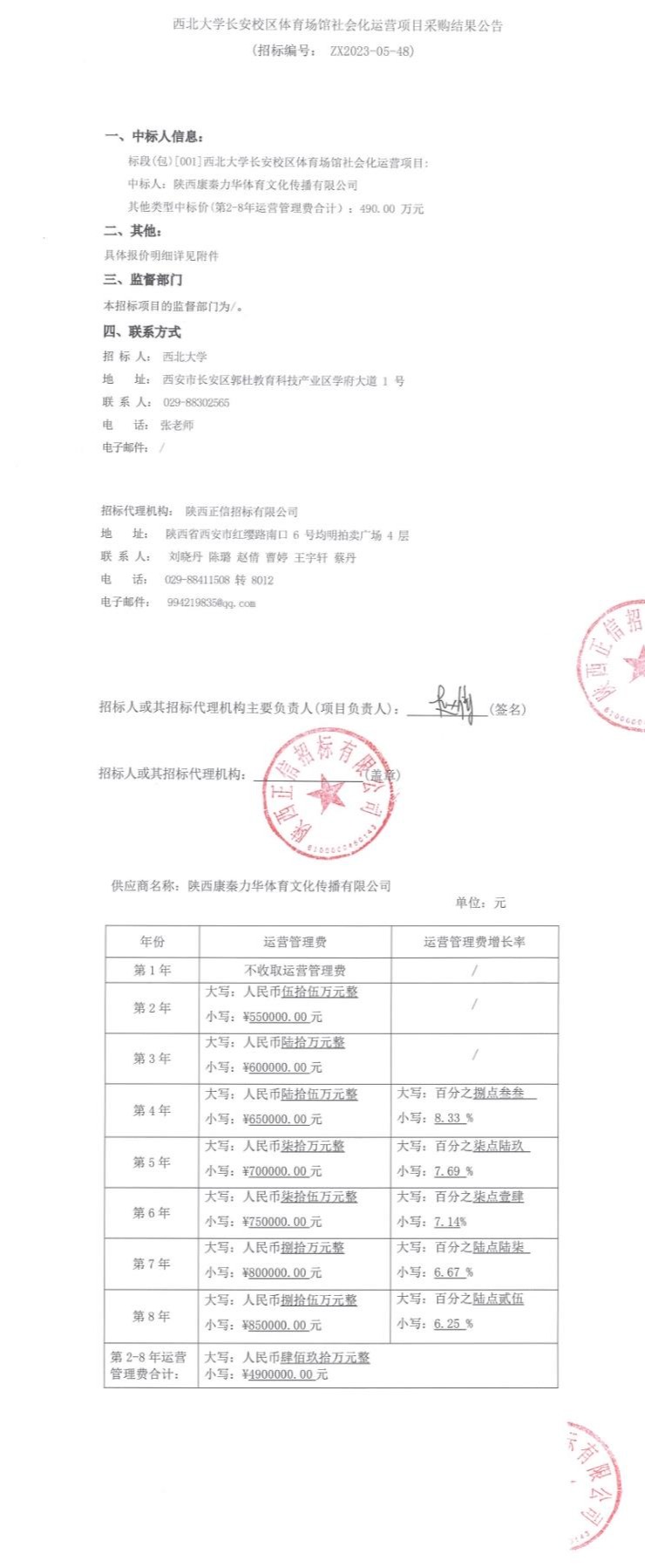 云博app官方在线入口长安校区体育场馆社会化运营项目采购结果公告