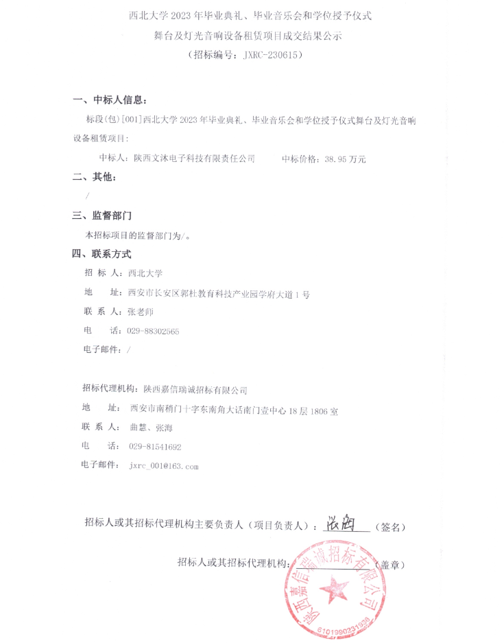 云博app官方在线入口2023年毕业典礼、毕业音乐会和学位授予仪式舞台及灯光音响设备租赁项目成交结果公示