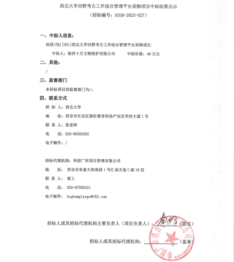 云博app官方在线入口田野考古工作综合管理平台采购项目中标结果公示