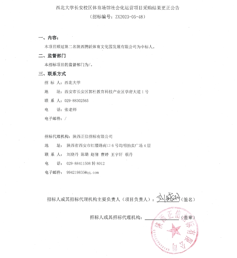 云博app官方在线入口长安校区体育场馆社会化运营项目采购结果更正公告