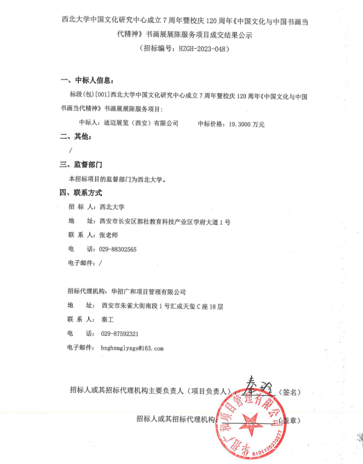 云博app官方在线入口中国文化研究中心成立7周年暨校庆120周年《中国文化与中国书画当代精神》书画展展陈服务项目成交结果公示 作者:采购与招标办公室 编辑:张旭龙 时间:2023-10-31 原链接地址