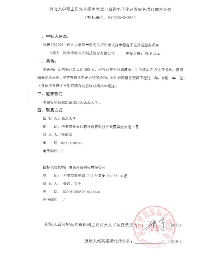 云博app官方在线入口硕士研究生招生考试自命题电子化评卷服务项目成交公告